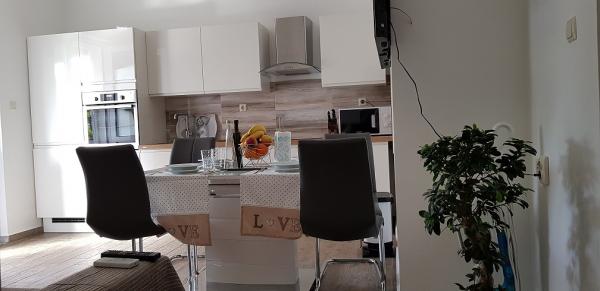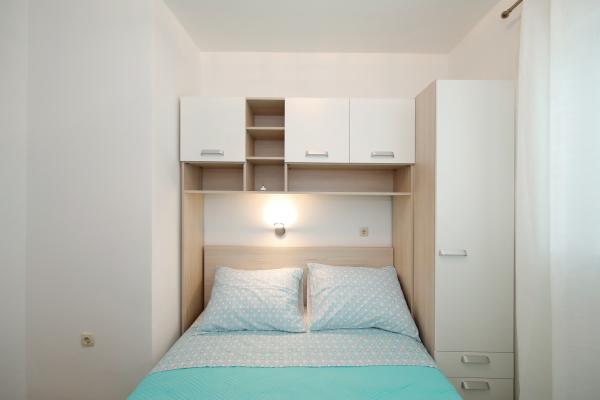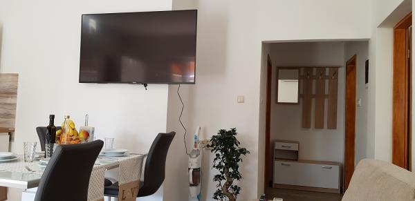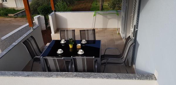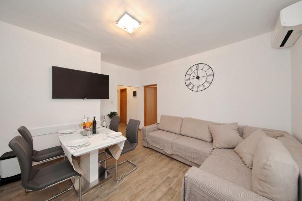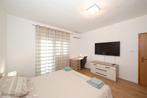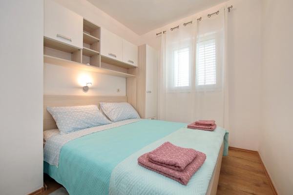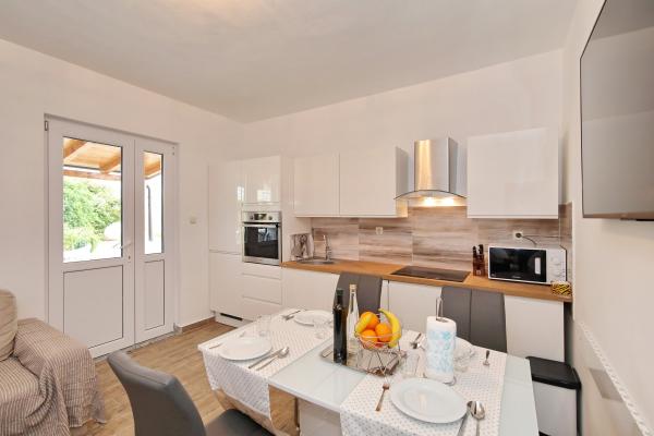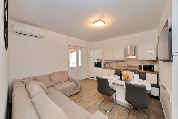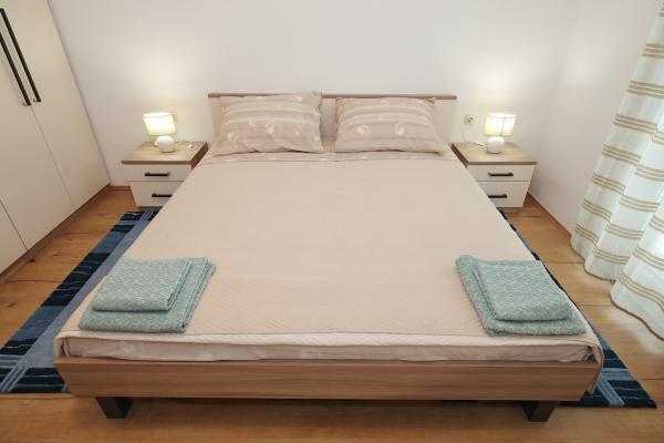 Nově upravený byt (4 1) se nachází v přízemí rodinného domu pouhých 70 metrů od moře a mělké písečné pláže vhodné pro malé děti. Byt se skládá z kuchyně a obývacího pokoje s rozkládacím křeslem, velkých teras na střeše, dvou ložnic, koupelny, společného grilování a soukromého parkoviště. Byt je klimatizovaný a vybavený kuchyňským nádobím a nádobím. Kuchyně a obývací pokoj obsahují moderní domácí spotřebiče, jako jsou ledničky s mrazničkou, trouba, indukční desky, mikrovlnná trouba, myčky nádobí, satelitní a on-line televizory a internet.