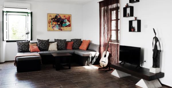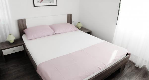 Byt se nachází v klidné staré části města Umístění na patře 100 let starý kamenný dům. 60 m2, nově zrekonstruované třípokojový apartmán se skládá z velkého obývacího pokoje, který zahrnuje kuchyň a jídelna, dvě ložnice, koupelna (s WC a sprchový kout) a terasou. Terasy je 25 m2 ve velikosti, s krásným výhledem na Pašman Channel, Biograd, benediktinský klášter sv Kosmy a Damiána a františkánský klášter sv Duje. Na pláži je 5 min chůze.
