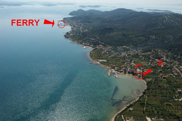 Pašman Ostrov. Apartmán A8, A4 +1, A2 +1. Jen 5-6 Dům metrů od písečné pláže. Klidné místo na dovolenou. Žádné problémy v této oblasti. Přírodní písečná pláž, vhodná zejména pro rodiny s malými dětmi.