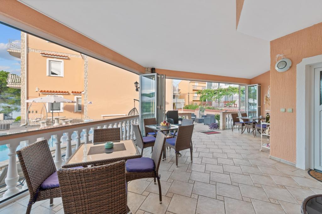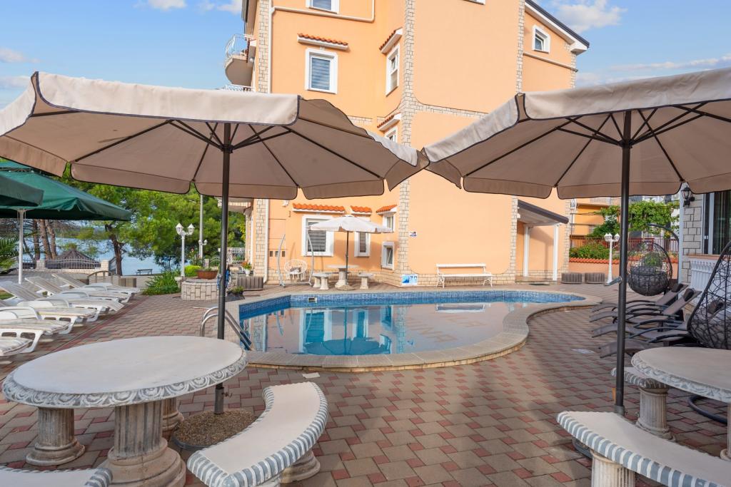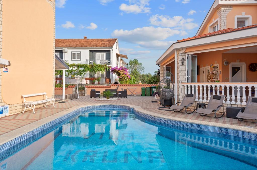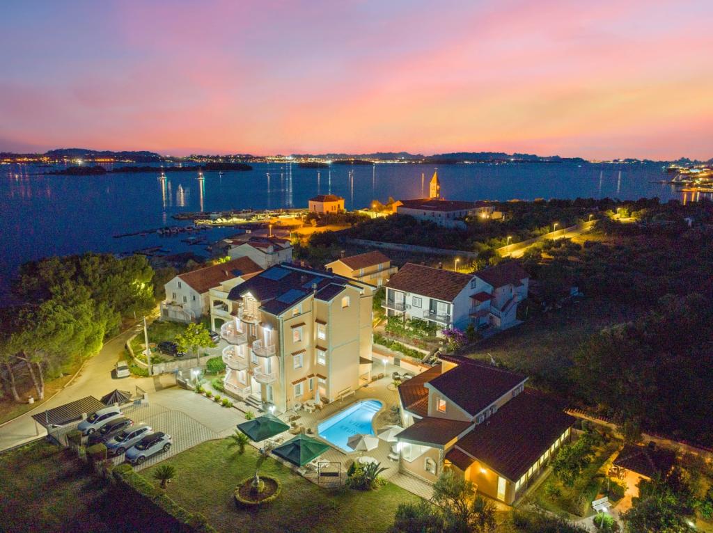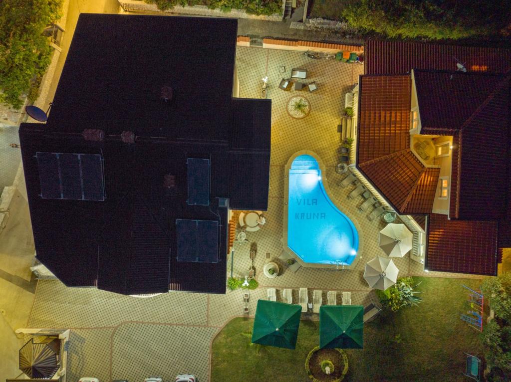 Crown Villa je luxusní 4-hvězdičkový hotel, který se pohodlně usadí 30 osob. Villa je prvním v řadě, v krásné poloze přímo na písečné pláži s výhledem na kanál Pašman. Zahrada s bohatou středomořskou vegetací okolí vily a je zvláště atraktivní. V zahradě se nachází vyhřívaný bazén s osvětlením. Vila nabízí 7 prostorných apartmánů, každý zařízené zvláštním způsobem. Každý apartmán má vlastní balkon nebo terasu s výhledem na moře, pláž a zahrada vily.