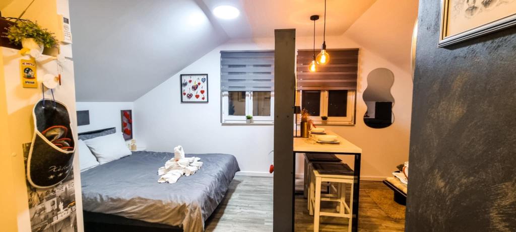Garsonka 7. nebe, kapacita 2+0, se nachází v Trško Vrh, v bezprostřední blízkosti města Krapina. 7th heaven je dokonalou kombinací rustikálního a moderního a je skvělou volbou pro odpočinek od městského hluku a městského života s přírodou a rodným městem Zagorje. Studio se skládá z kuchyně a jídelny, postele, obývacího pokoje a koupelny. Součástí ubytování je parkoviště, wi-fi, klimatizace, TV, rádio, varná konvice, mikrovlnná trouba, indukční varná deska, lednice a různé společenské hry pro zábavu (fotbal, elektronické šipky, stolní fotbálek, závěsný bowling atd.). Zařízení je obklopeno sady a květinovými zahradami a malou částí lesa. Hosté mají také možnost využít gril, ohniště, lehátka, houpačky, altán a terasu, v teplých letních dnech i malý venkovní bazén a sprchu. Za domácí mazlíčky se neplatí žádný příplatek a jsou vítáni! Vítejte u nás!