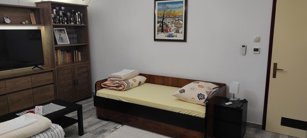 Kompletně a moderně vybavený apartmán (klimatizace, podlahové vytápění, LED osvětlení + průmyslové osvětlení na dálkové ovládání, 2 TV 50", wi-fi zdarma atd.) pro 1 - 5 osob + jedna přistýlka pro jednu osobu. TP Byt se nachází v samém centru Križevci, na hlavní ulici starého města a obchody a restaurace jsou v blízkosti! Vše, co potřebujete (obchody, restaurace, kavárny, bankomaty, banka, lékárna, památky, muzea, galerie, městské koupaliště bazény, sportoviště) jsou dostupné pěšky za pár minut. Personál mluví: anglicky, chorvatsky