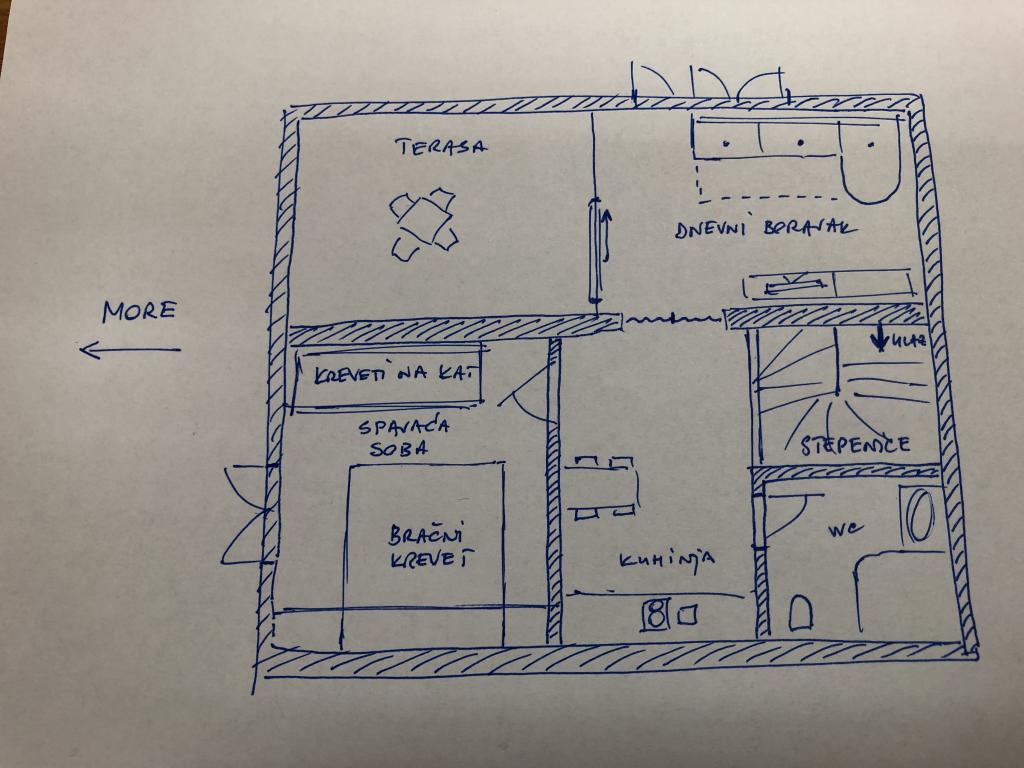 Nově zrekonstruovaný byt se nachází ve druhém patře cihlového domu v centru ČIŽIČI, 5 minut chůze od pláže. Zejména pro klidnou rodinnou dovolenou s malými dětmi. Samostatný vchod, velká terasa, satelitní TV, Wi-Fi, parkoviště.