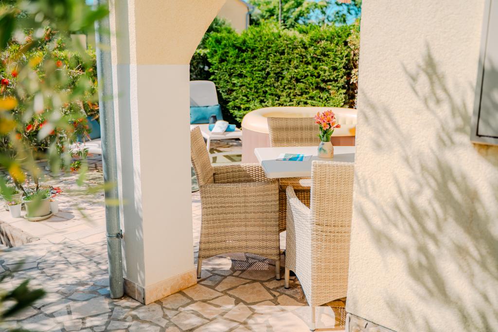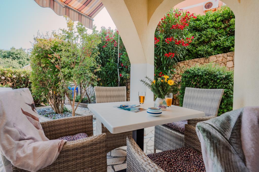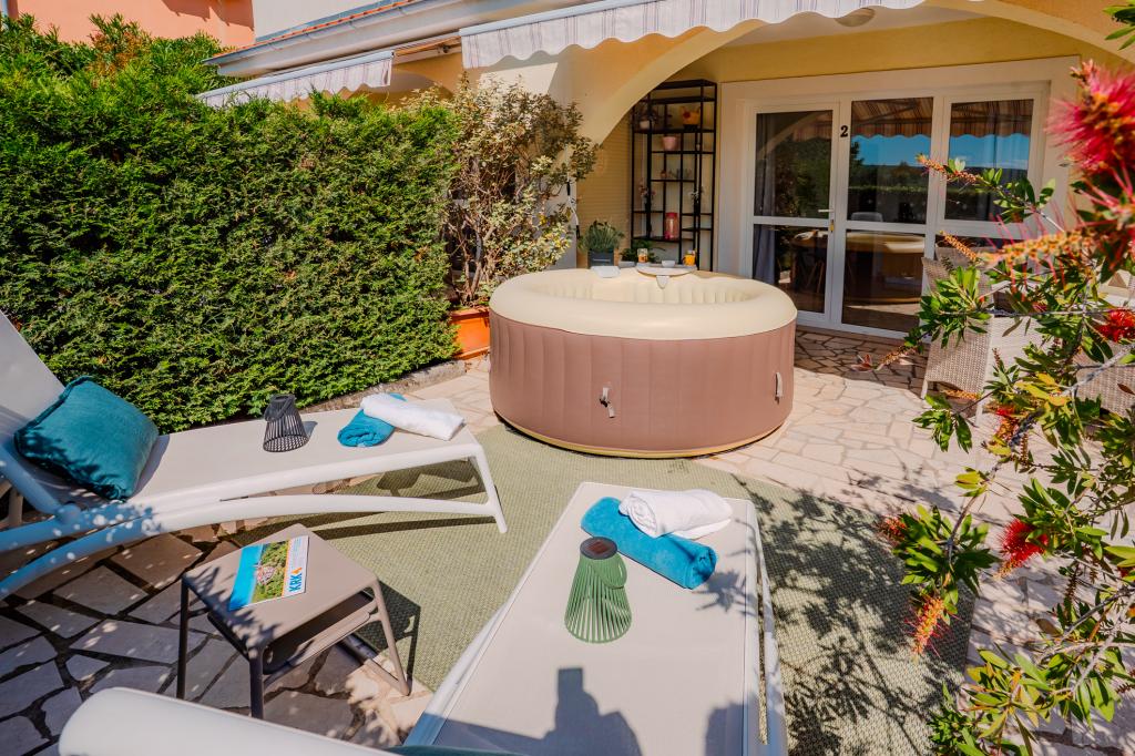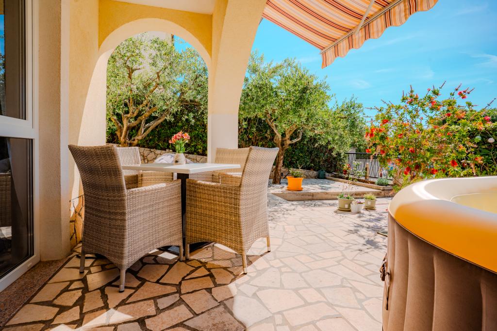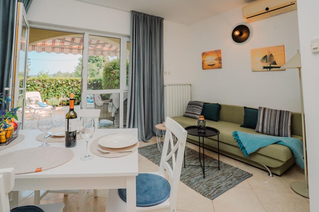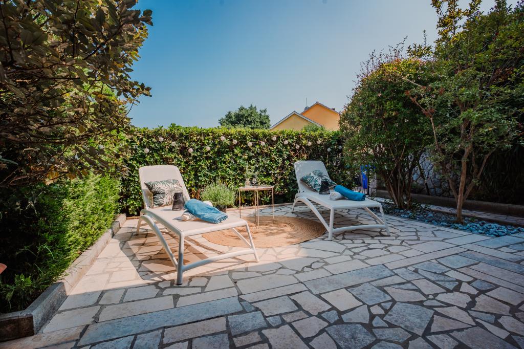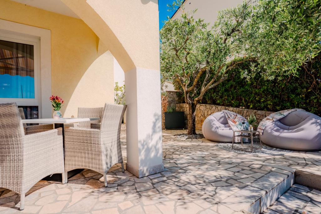 Čtyři moderně zařízené apartmány se nacházejí v klidné vesničce Čižići na ostrově Krk, ideální pro pohodovou rodinnou nebo romantickou dovolenou. Apartmány 1 a 2 se nacházejí v přízemí a nabízejí terasy s lehátky obklopené voňavou středomořskou zelení, zatímco apartmán 2 má navíc vyhřívanou vířivku a odpočinkový koutek v příjemném stínu olivovníků. Apartmány 3 a 4 v prvním patře mají balkon s výhledem na moře. Všechny apartmány mají klimatizaci, bezplatné Wi-Fi, SAT-TV, vybavenou kuchyň, koupelnu, ložní prádlo, ručníky a bezplatné parkování. Domácí mazlíčci jsou vítáni. Pláž je vzdálená 500 m.