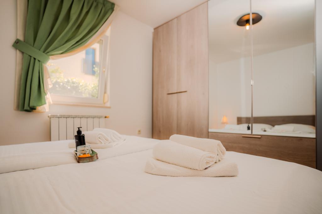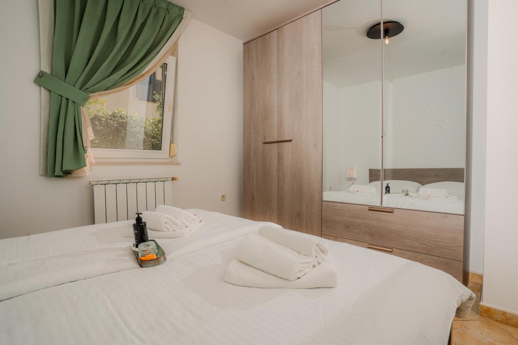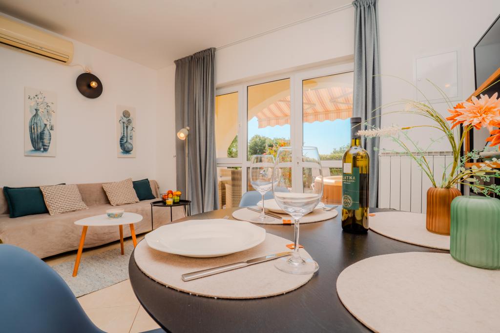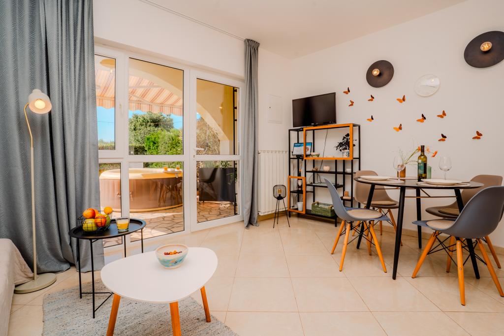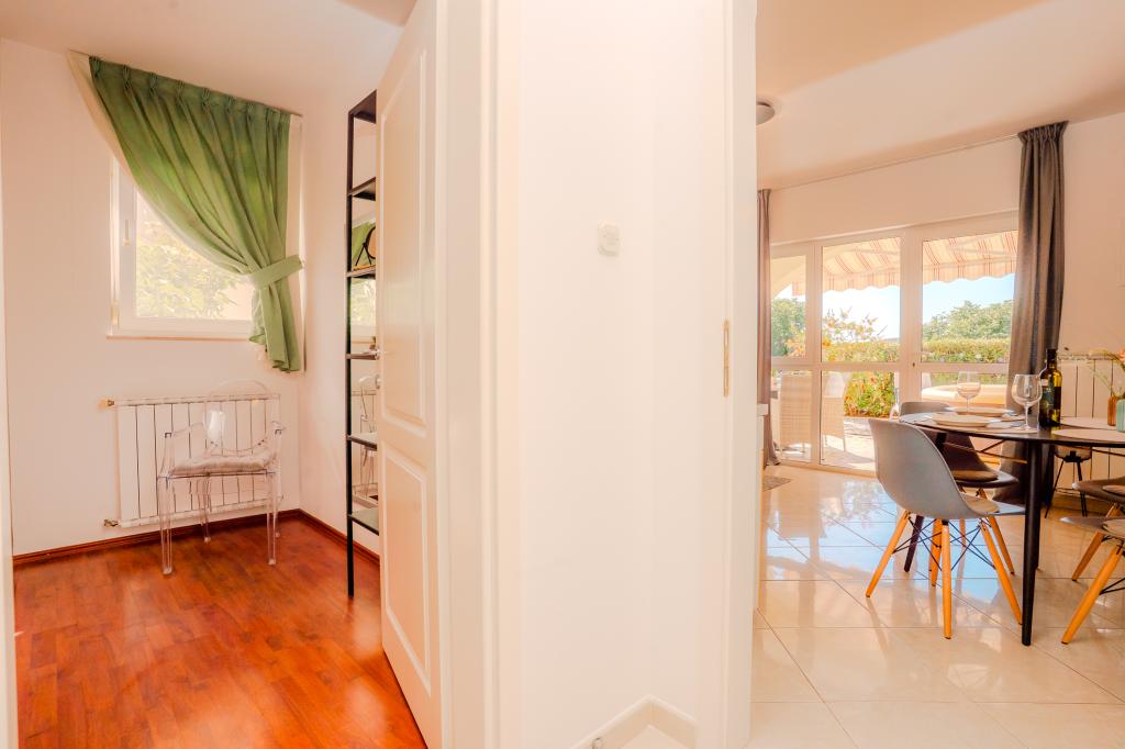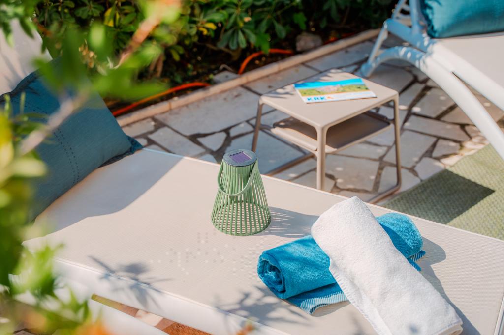 Čtyři moderně zařízené apartmány se nacházejí v klidné vesničce Čižići na ostrově Krk, ideální pro pohodovou rodinnou nebo romantickou dovolenou. Apartmány 1 a 2 se nacházejí v přízemí a nabízejí terasy s lehátky obklopené voňavou středomořskou zelení, zatímco apartmán 2 má navíc vyhřívanou vířivku a odpočinkový koutek v příjemném stínu olivovníků. Apartmány 3 a 4 v prvním patře mají balkon s výhledem na moře. Všechny apartmány mají klimatizaci, bezplatné Wi-Fi, SAT-TV, vybavenou kuchyň, koupelnu, ložní prádlo, ručníky a bezplatné parkování. Domácí mazlíčci jsou vítáni. Pláž je vzdálená 500 m.