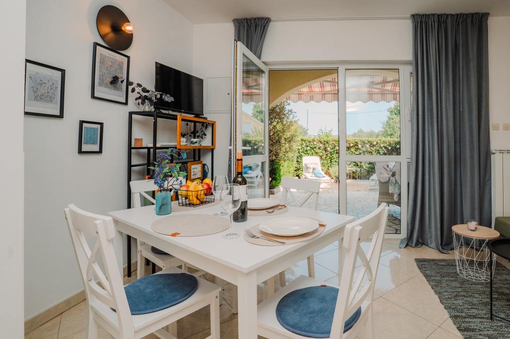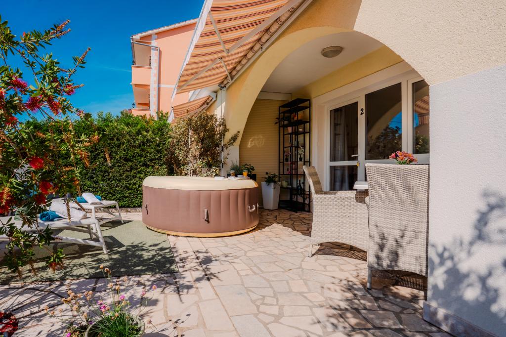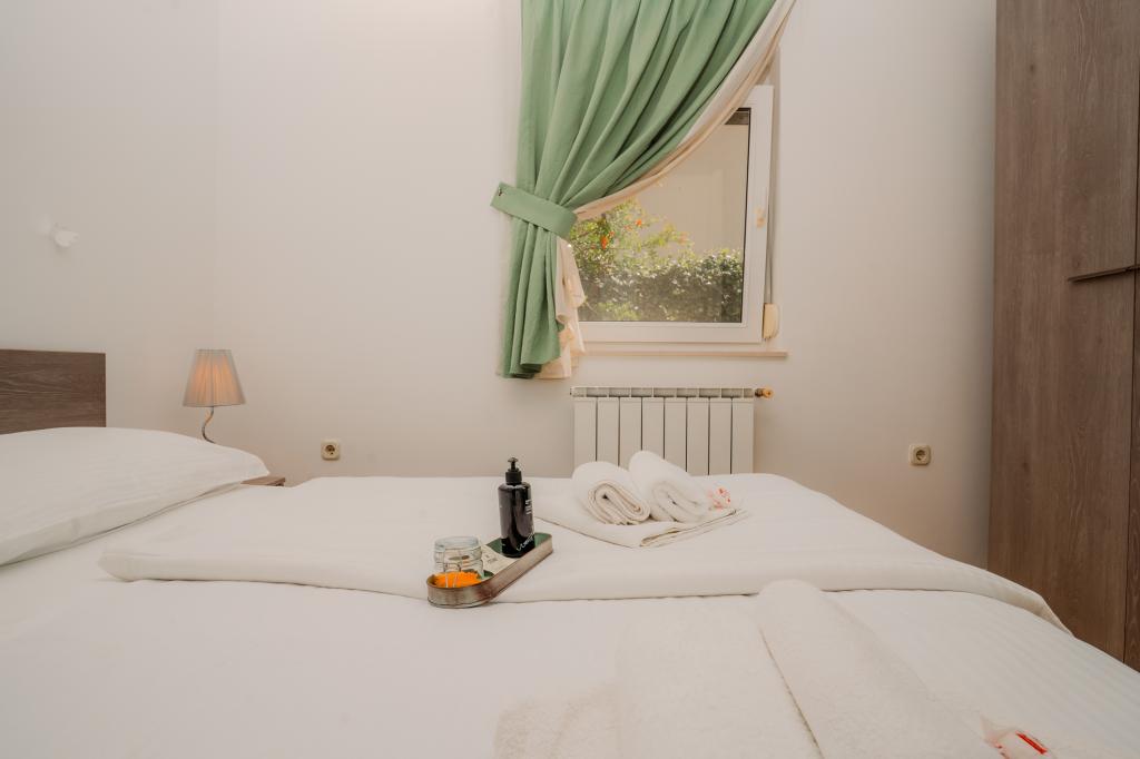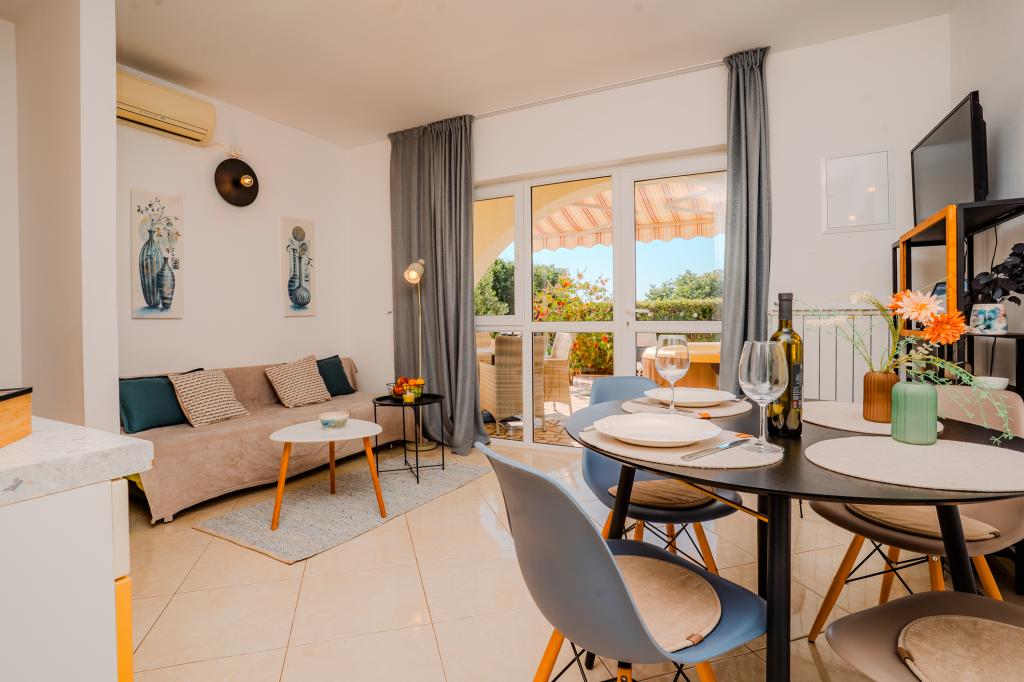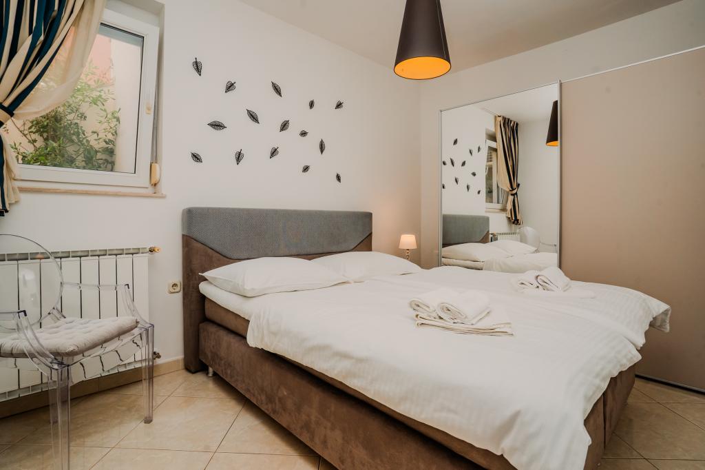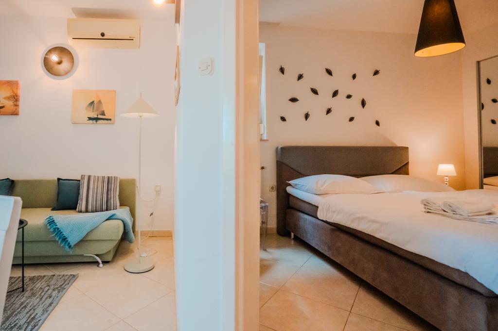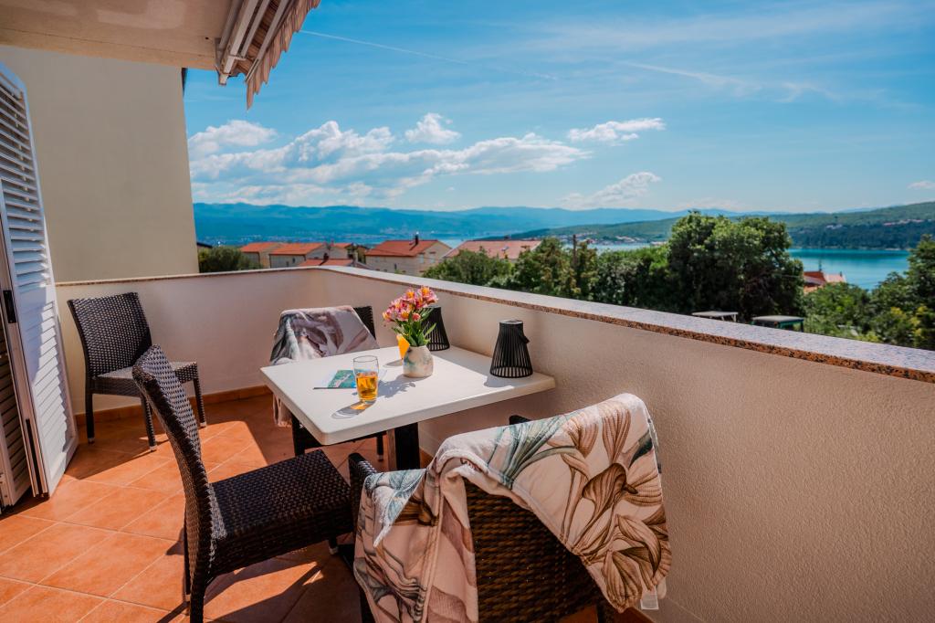 Čtyři moderně zařízené apartmány se nacházejí v klidné vesničce Čižići na ostrově Krk, ideální pro pohodovou rodinnou nebo romantickou dovolenou. Apartmány 1 a 2 se nacházejí v přízemí a nabízejí terasy s lehátky obklopené voňavou středomořskou zelení, zatímco apartmán 2 má navíc vyhřívanou vířivku a odpočinkový koutek v příjemném stínu olivovníků. Apartmány 3 a 4 v prvním patře mají balkon s výhledem na moře. Všechny apartmány mají klimatizaci, bezplatné Wi-Fi, SAT-TV, vybavenou kuchyň, koupelnu, ložní prádlo, ručníky a bezplatné parkování. Domácí mazlíčci jsou vítáni. Pláž je vzdálená 500 m.