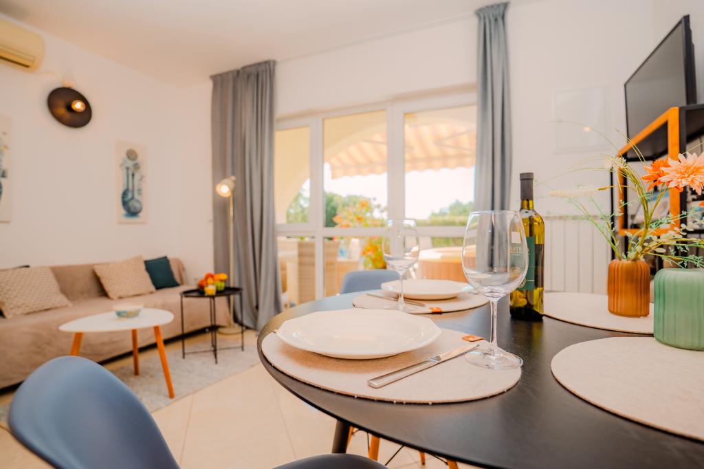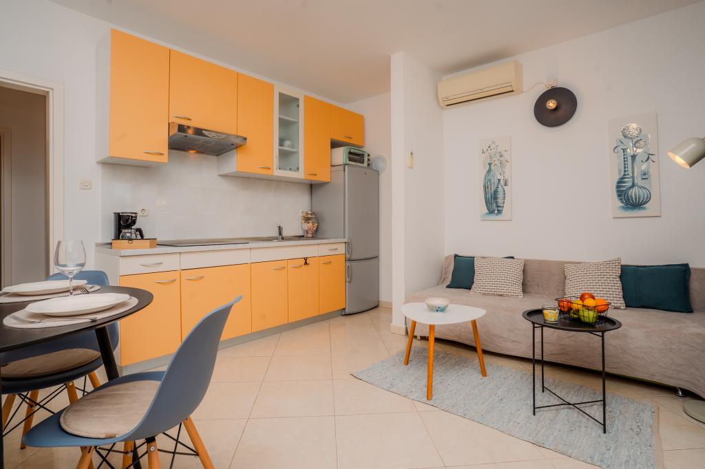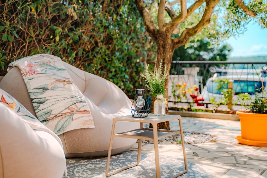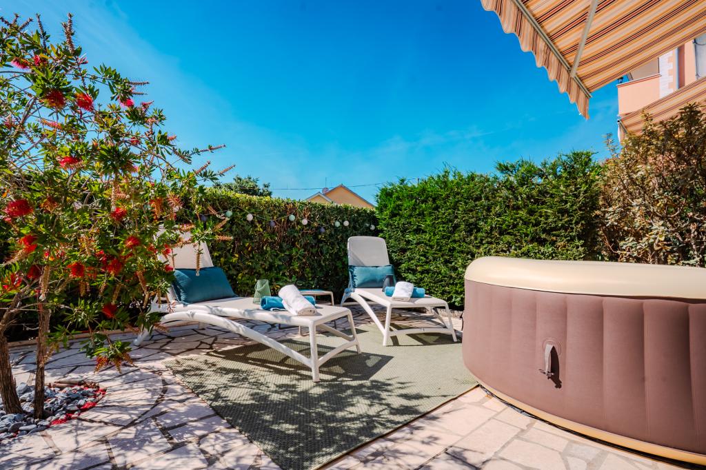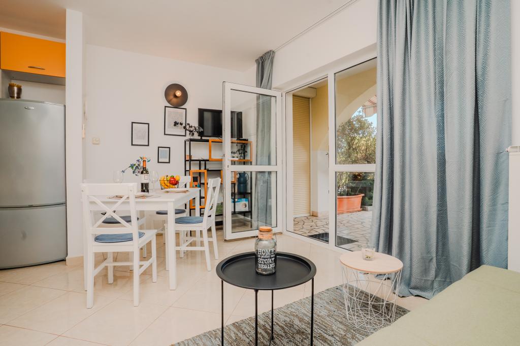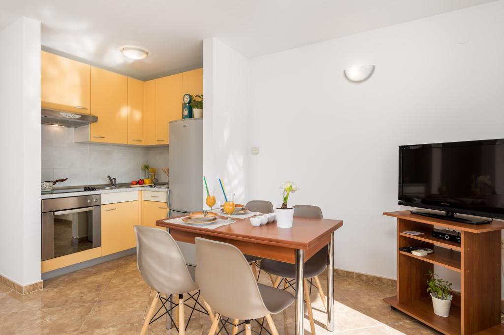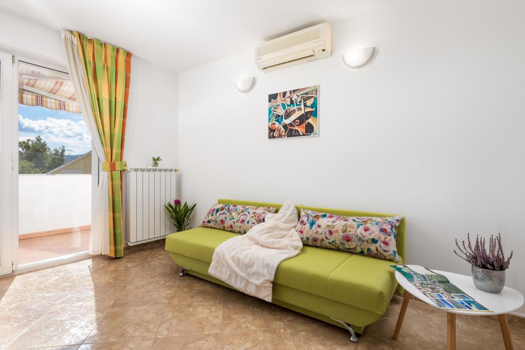 Čtyři moderně zařízené apartmány se nacházejí v klidné vesničce Čižići na ostrově Krk, ideální pro pohodovou rodinnou nebo romantickou dovolenou. Apartmány 1 a 2 se nacházejí v přízemí a nabízejí terasy s lehátky obklopené voňavou středomořskou zelení, zatímco apartmán 2 má navíc vyhřívanou vířivku a odpočinkový koutek v příjemném stínu olivovníků. Apartmány 3 a 4 v prvním patře mají balkon s výhledem na moře. Všechny apartmány mají klimatizaci, bezplatné Wi-Fi, SAT-TV, vybavenou kuchyň, koupelnu, ložní prádlo, ručníky a bezplatné parkování. Domácí mazlíčci jsou vítáni. Pláž je vzdálená 500 m.