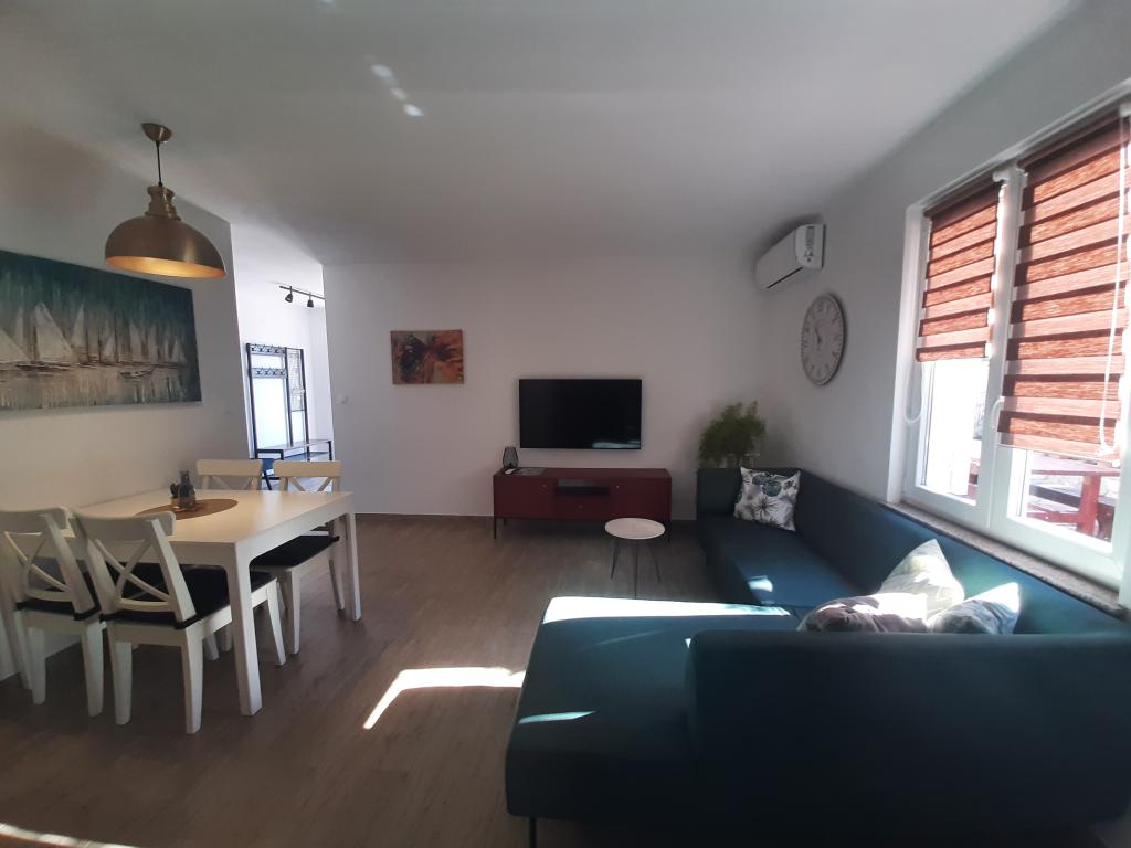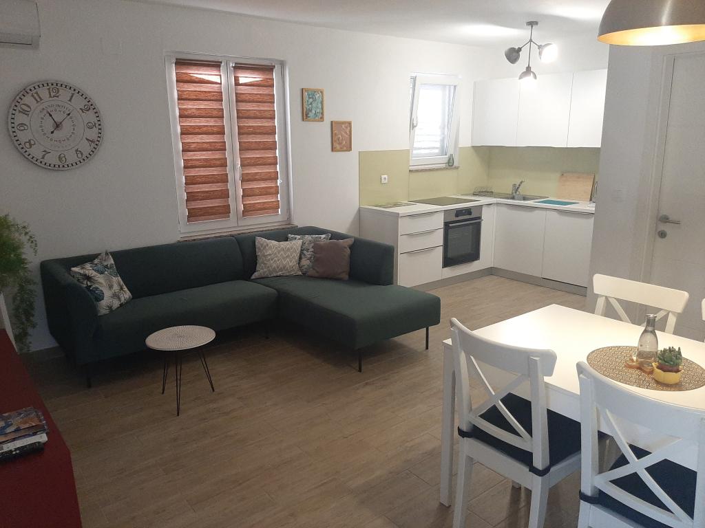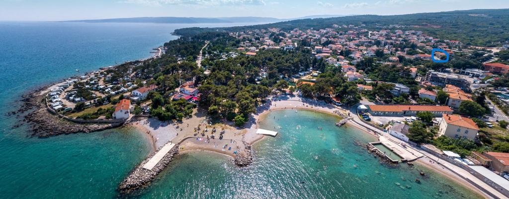 Nově zrekonstruovaný byt se nachází v přízemí rodinného domu v samém centru Krku. Byt má dvě ložnice, bohatě vybavenou kuchyň s jídelním koutem, obývací pokoj, koupelnu a terasu s grilem. V ceně ubytování je bezplatné Wi-Fi a soukromé parkoviště u objektu. Poloha apartmánu je mimořádně atraktivní, protože během svého pobytu na Krku nepotřebujete auto. Byt se nachází v blízkosti veškeré potřebné občanské vybavenosti, kterou můžete navštívit pěšky (pláž, obchod, restaurace, staré centrum města). Kromě standardních spotřebičů je byt vybaven myčkou a pračkou a také klimatizací. Domácí mazlíčci nejsou povoleni.
