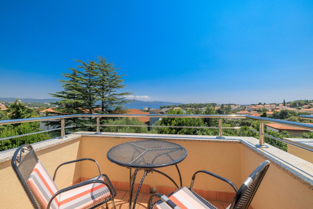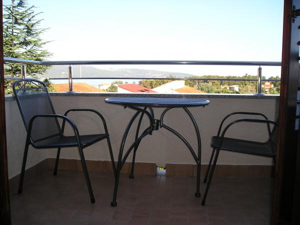 Ve městě Krk, 2 apartmány ve 2. patře, s výhledem na moře a staré město. Pro 1 nebo 2 osoby (může zahrnovat 1 dítě v čísle 2). Nepřijímáme třetí osobu ani dítě. Nepřijímáme domácí mazlíčky jako hosty. Byt je 5 minut chůze od centra Krku a od supermarketu, řeznictví, rybího trhu, pekárny. restaurace.... banky, pošty ... bankomaty.... . Apartmán je 10 minut chůze od pláží Ježevac a Porporela. Z celkové ceny se platí dalších 60,00 €.