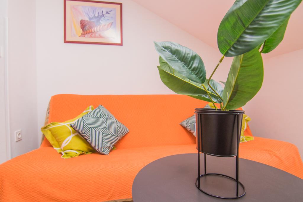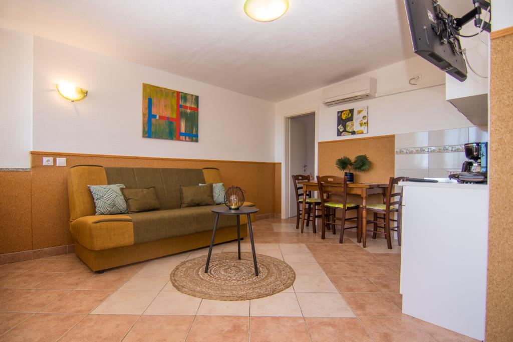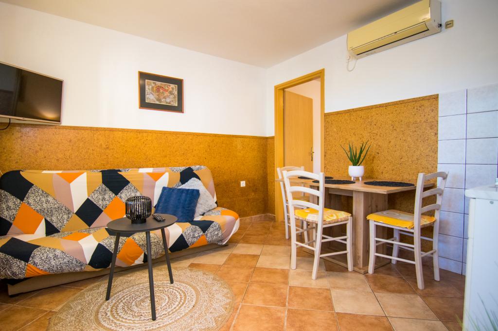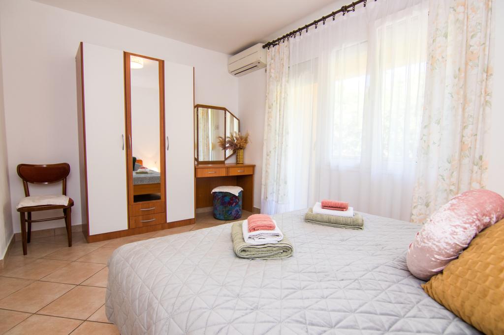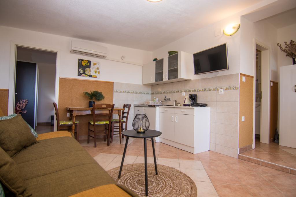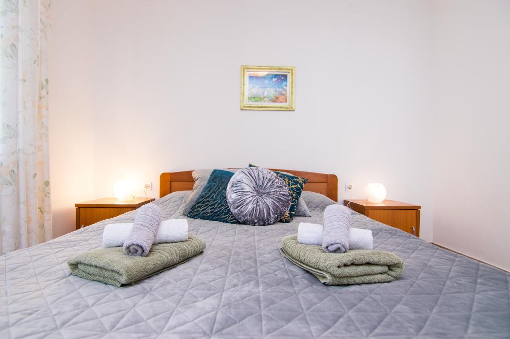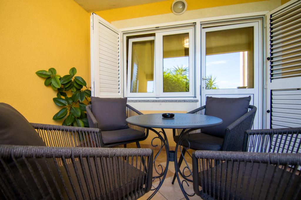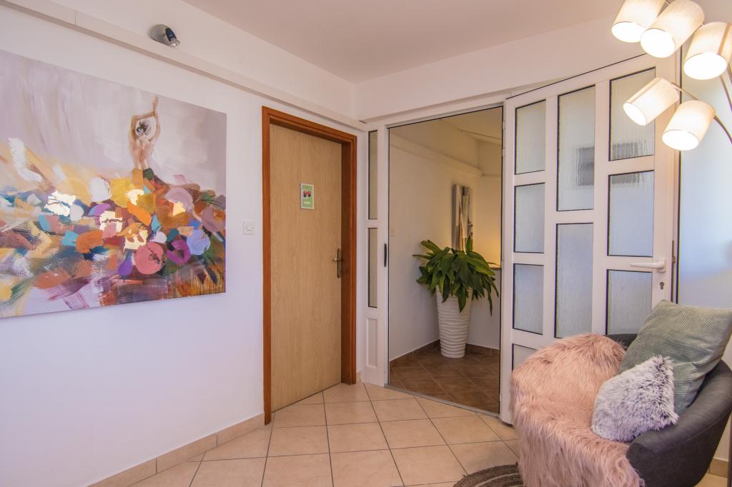 Dům se nachází v samém centru města, pouhých 90 m od moře a krásné promenády s mnoha restauracemi, kavárnami a dalším vybavením. V blízkosti domu hosté najdou obchody, banku, poštu, lékárnu a podobně. Dvůr domu je prostorný, kde je dostatek místa pro parkování aut hostů. Je obklopen středomořskými rostlinami a květinami. Hosté mohou také využít společný gril umístěný za domem. Všechny byty mají terasu nebo balkon a některé jednotky mají dokonce dvě terasy nebo dva balkony. Okolí je klidné a bezpečné. Z některých apartmánů je vidět na moře. Každá jednotka má klimatizaci, satelitní TV, internet a kávovar.