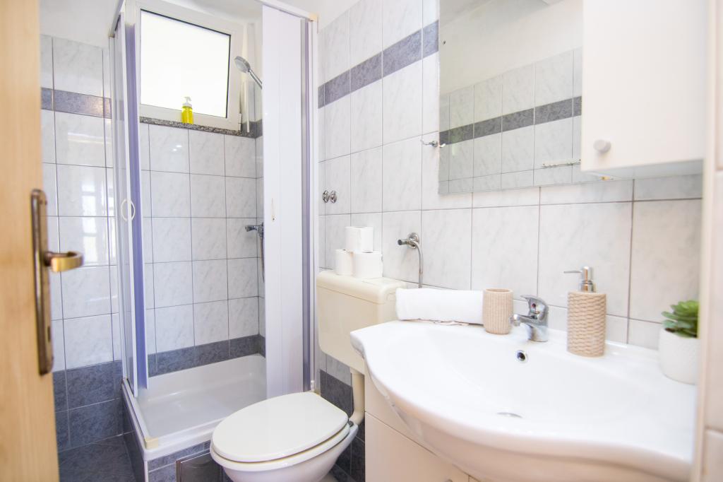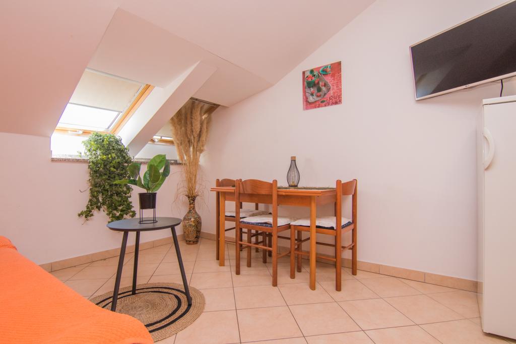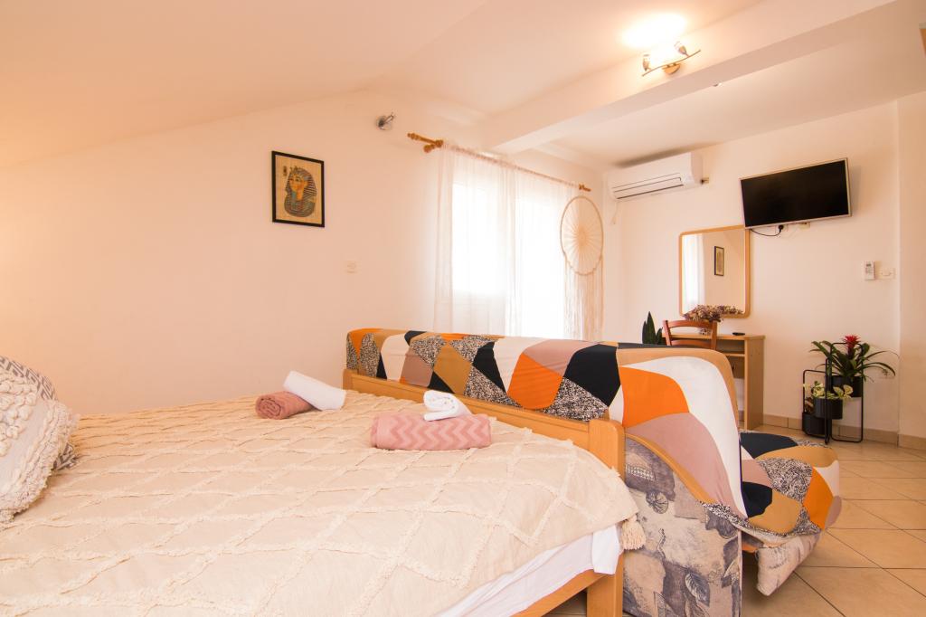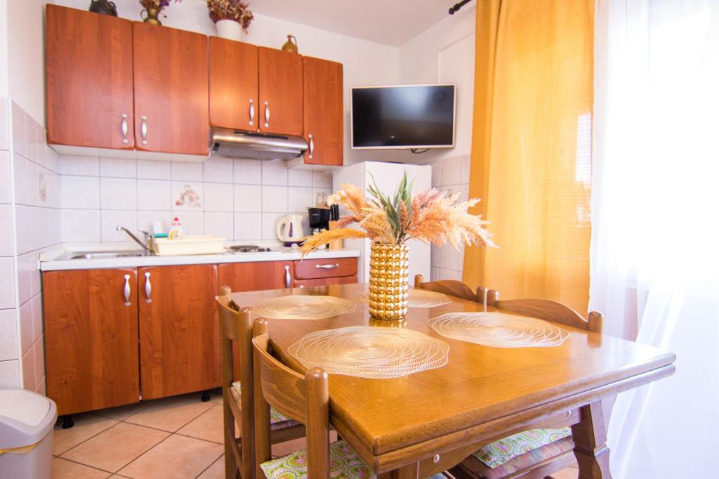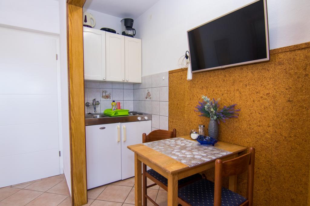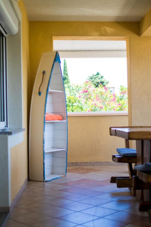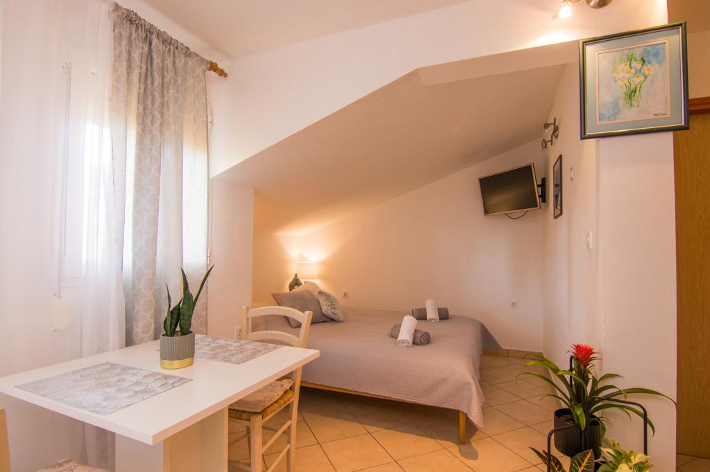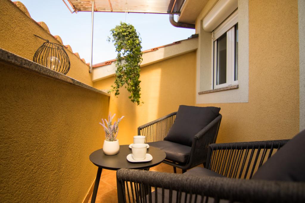 Dům se nachází v samém centru města, pouhých 90 m od moře a krásné promenády s mnoha restauracemi, kavárnami a dalším vybavením. V blízkosti domu hosté najdou obchody, banku, poštu, lékárnu a podobně. Dvůr domu je prostorný, kde je dostatek místa pro parkování aut hostů. Je obklopen středomořskými rostlinami a květinami. Hosté mohou také využít společný gril umístěný za domem. Všechny byty mají terasu nebo balkon a některé jednotky mají dokonce dvě terasy nebo dva balkony. Okolí je klidné a bezpečné. Z některých apartmánů je vidět na moře. Každá jednotka má klimatizaci, satelitní TV, internet a kávovar.