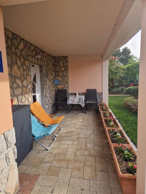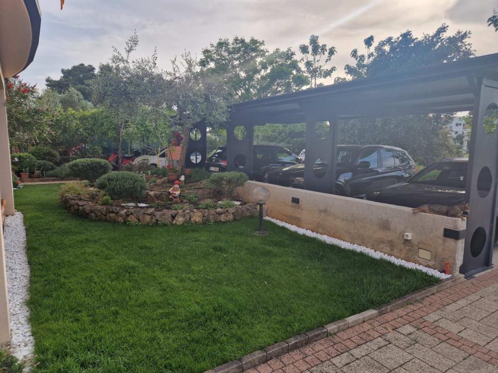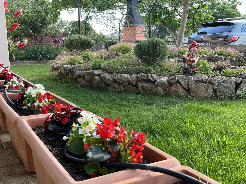 V krásné zahradě pro tři apartmány mají hosté k dispozici gril. Apartmány mají lehátka a kompletní sedací nábytek na terasách. V ceně ubytování je WIFI a klimatizace. Všechny apartmány mají pračky.