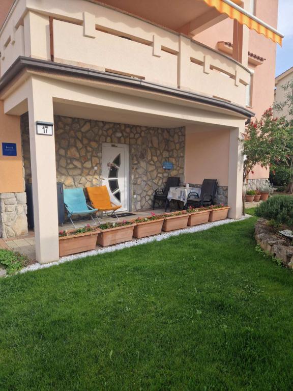 Moderně vybavené apartmány v klidné části města Krk, v blízkosti veškeré občanské vybavenosti. Nemovitost se nachází 5 minut chůze od pláže, 10 minut od centra. APP1 se nachází v prvním patře s velkou terasou a APP 2 a APP 3 jsou v přízemí. Každý apartmán má vlastní parkovací místo.