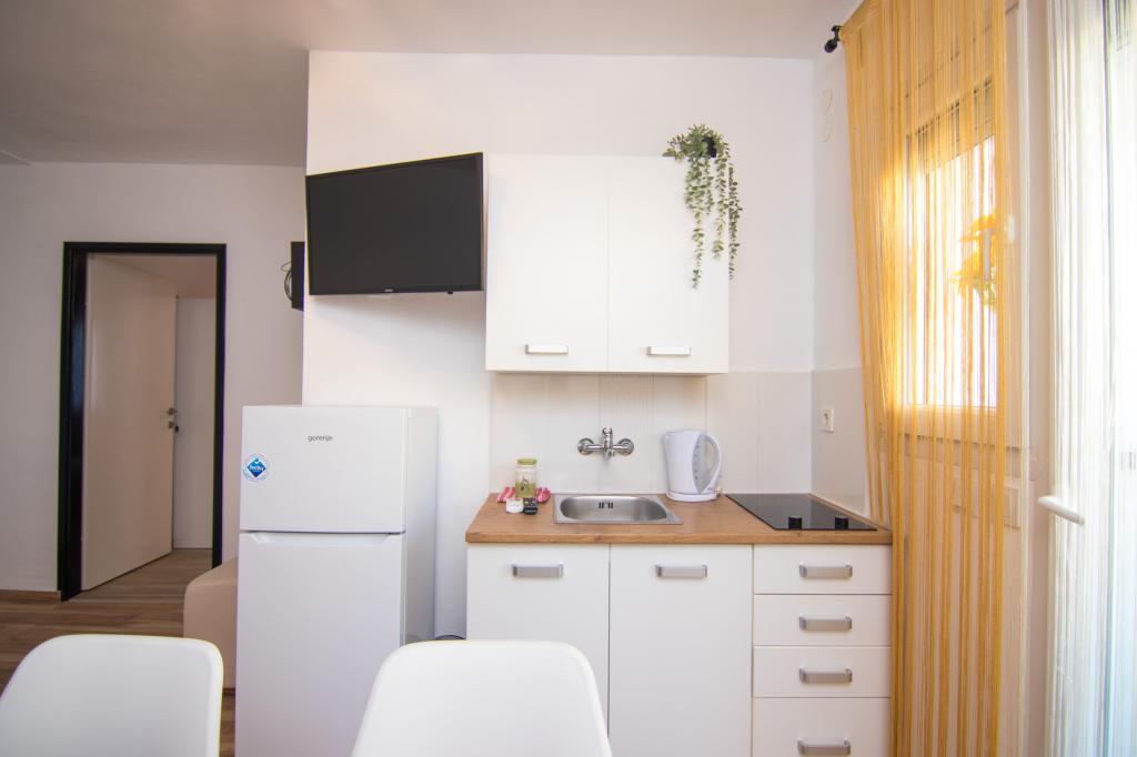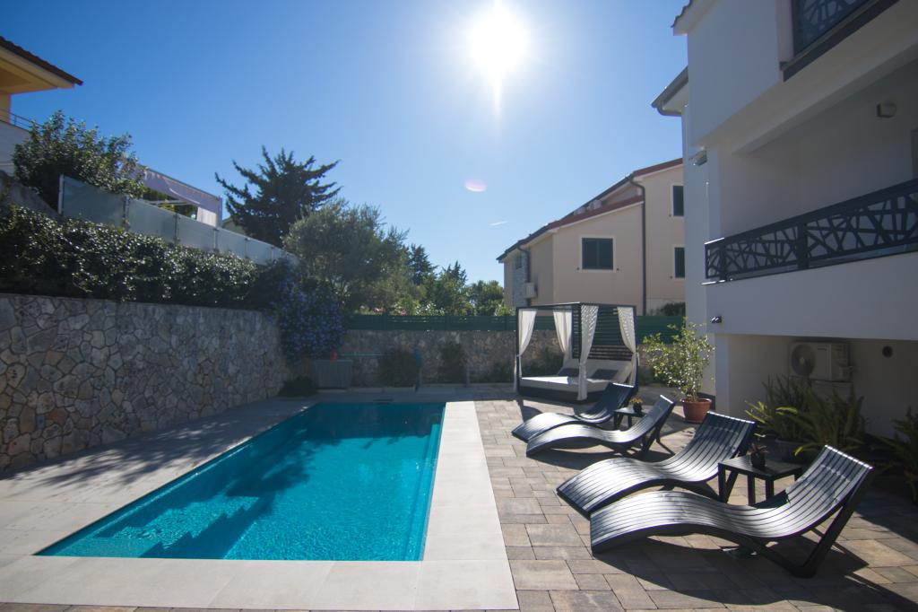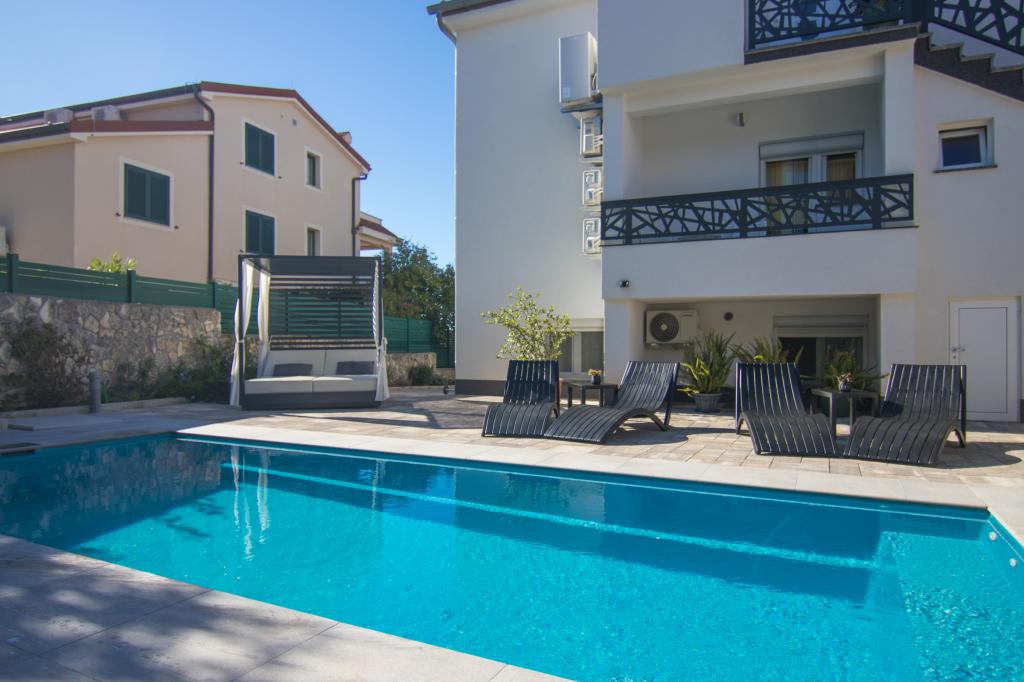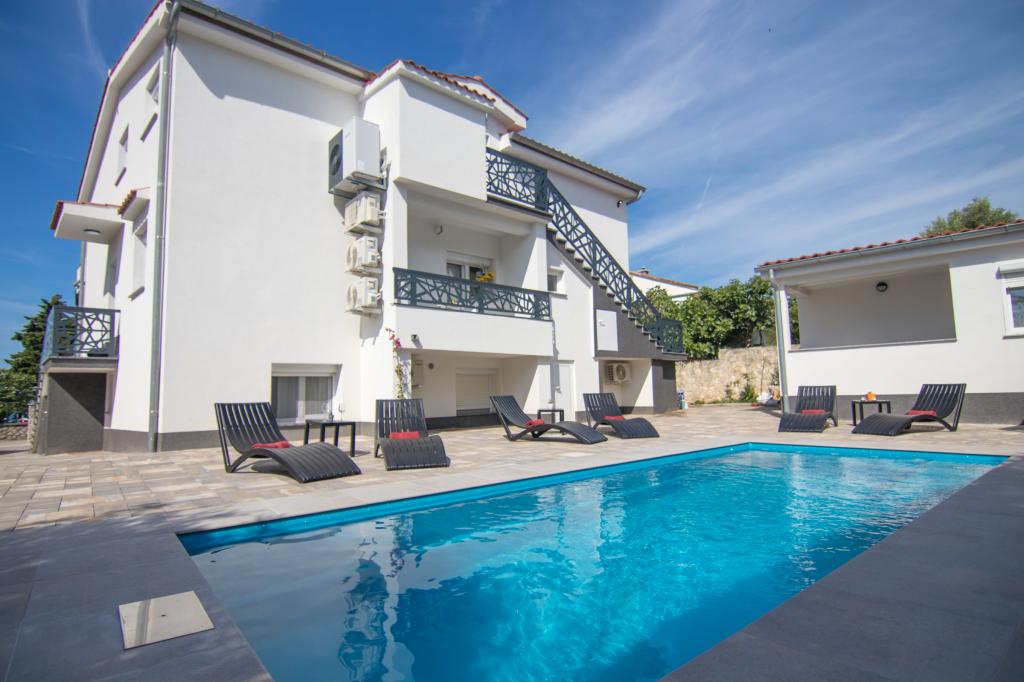 Tato krásná nemovitost se nachází na výborném místě, pouhých 400 metrů od pláže a asi 500 metrů od vstupu do Starého Města Krky, což z ní činí ideální volbu pro hosty, kteří si chtějí užít kombinaci moře, historie a městské atmosféry. Objekt nabízí fantastický vyhřívaný bazén s opalovací plochou, ideální pro relaxaci a příjemné dny. Některé jednotky nabízejí krásný výhled na moře a prostorné terasy, zatímco jiné mají balkony nebo se nacházejí přímo u bazénu, takže jsou ideální pro hosty, kteří chtějí být blízko sociálního vybavení. Všechny jednotky mají soukromé parkoviště, satelitní programy, bezplatný internet, rychlovarnou konvici a kávovar na filtrovanou kávu, což hostům zajišťuje pohodlný a praktický pobyt.