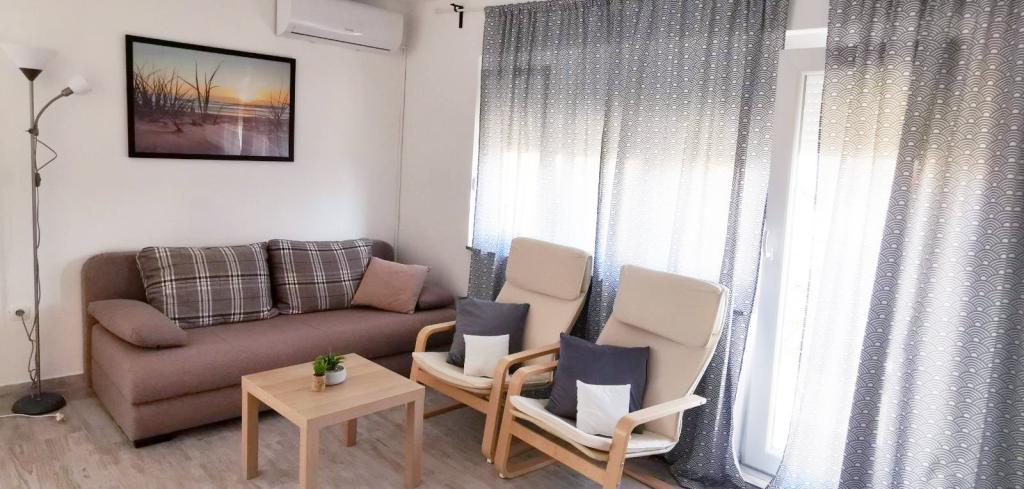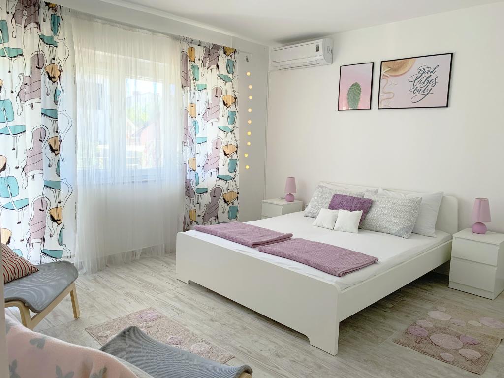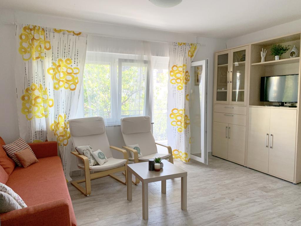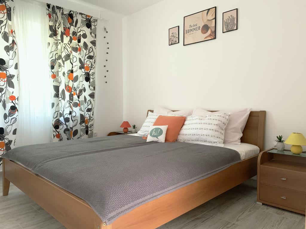 Tento byt je po kompletní rekonstrukci (2019) a je nový - včetně kuchyně, koupelny a veškerého nábytku. Nachází se v přízemí, 5 minut od centra města. Je velký a prostorný s malým balkonem na jedné straně a terasou na straně druhé. Má dvě ložnice s manželskou postelí a obývací pokoj s rozkládací pohovkou. Vzhledem k tomu, že v létě může být velmi horko, zajistili jsme apartmán se dvěma klimatizacemi. Wifi k dispozici zdarma :)
