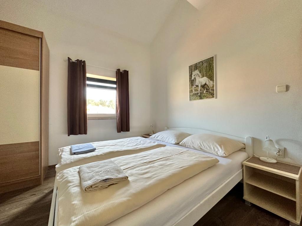 POZNÁMKA: Při pobytu do 3 dnů se cena zvyšuje o 30 % - Cena nezahrnuje následující položky: Registrace 3 € na osobu jednorázově - Cena za rezervaci: 10 € jednorázově - Přistýlka: 10 € na osobu den - Domácí mazlíčci: 12 € za den