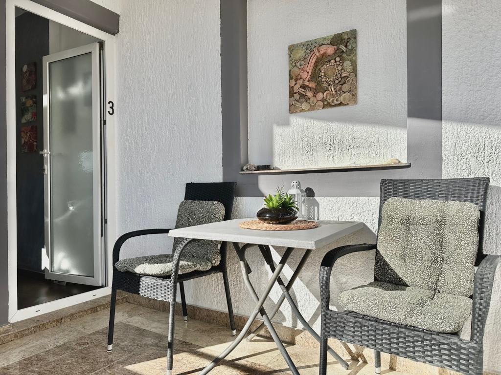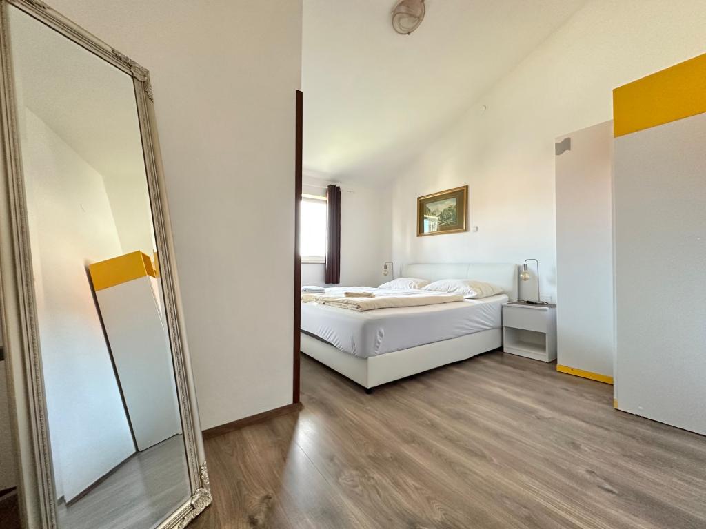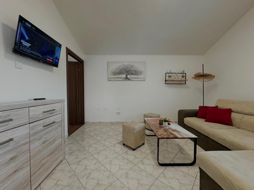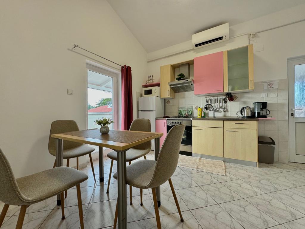 Dům se nachází na velmi výhodném místě, v klidné čtvrti, pár minut chůze od pláže a deset minut chůze do centra města. Zařízení se skládá z 5 apartmánů. Tři z nich jsou studia až pro 2 osoby, jeden apartmán až pro 3 osoby a apartmán o velikosti 75 metrů čtverečních až pro 5 hostů. Každý apartmán má plně vybavenou kuchyň, krásný balkon nebo terasu, soukromý vchod a hlídané parkovací místo. Hostům je k dispozici společná zahrada s grilem. *** Domácí mazlíčci jsou vítáni na základě předchozího oznámení a za příplatek 12 eur na den (platí se na místě).