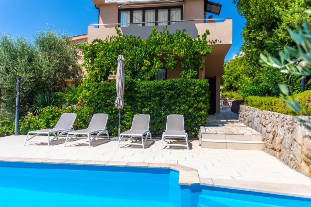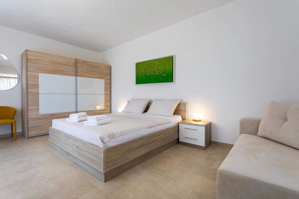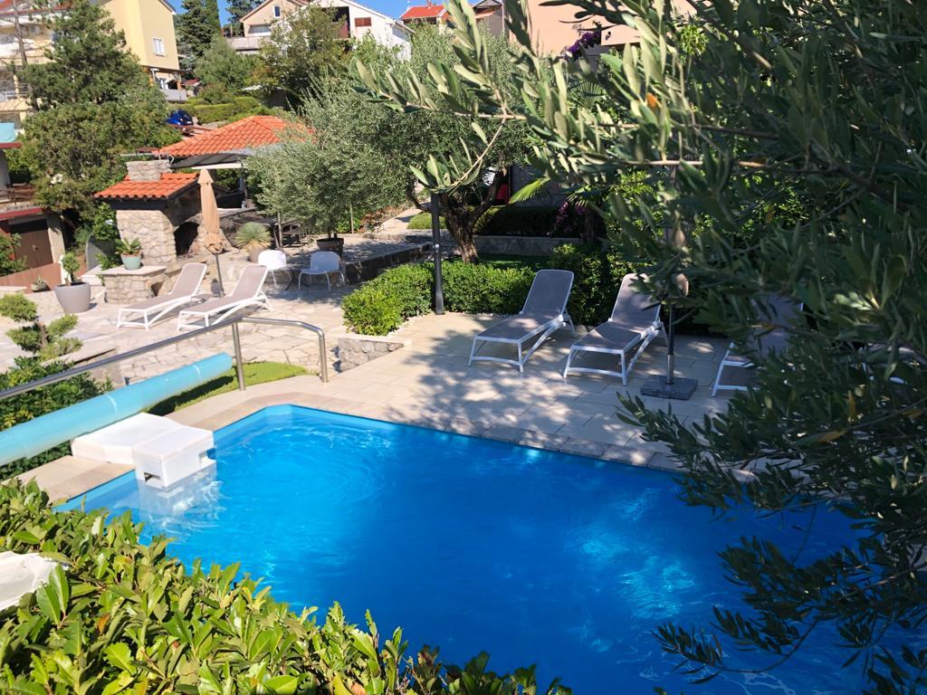 Apartmány Haus Barbara – Oáza klidu s bazénem na ostrově Krk. Vítejte v Haus Barbara, rodinném zařízení, které se nachází v půvabném městečku Kornić. Naše apartmány na ideálním místě, pouhé 3 km od Punatu a 5 km od města Krk, nabízejí dokonalou kombinaci komfortu, moderního designu a relaxační atmosféry. co vás čeká? 4 moderně zařízené apartmány, ideální pro rodinnou dovolenou nebo útěk pro dva. WiFi, klimatizace a satelitní TV v každém apartmánu pro vaše pohodlí. Krásná zahrada - ideální pro relaxaci a užívání si přírody. Bazén k dispozici všem hostům - osvěžte se v teplých letních dnech. Bezpečné parkování – žádné starosti o vaše vozidlo. Perfektní poloha: V blízkosti krásných pláží, restaurací a atrakcí. Klidné prostředí, daleko od davů, ale dost blízko k prozkoumání ostrova. Ideální pro milovníky přírody, sportovních aktivit a autentického zážitku z ostrova.