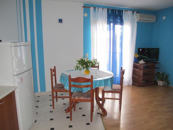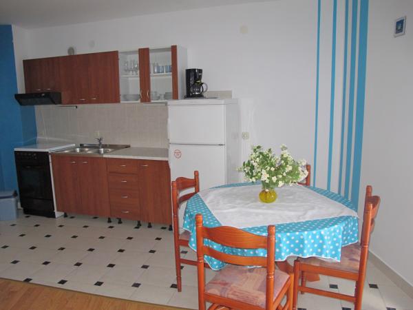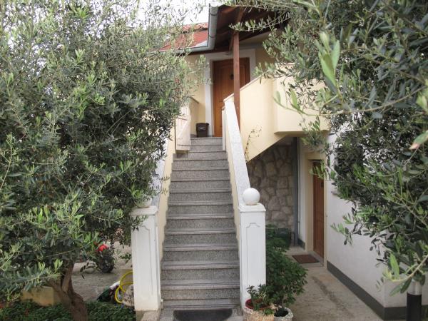 Apartmány se nacházejí v klidné části města, 10 minut chůze od centra a pouze 2 minuty od pláže. Skládají se z chodby, koupelny, dvoulůžkové ložnice, prostorného obývacího pokoje s přistýlkou pro dvě osoby a kuchyně. Terasa apartmánu č. 1 nabízí výhled na moře a terasa apartmánu č. 2 má přístup do zahrady. Jsou vybaveny vším, co potřebujete pro příjemný pobyt. Jsme vám k dispozici 24 hodin denně. Každý apartmán má zabezpečené parkovací místo.