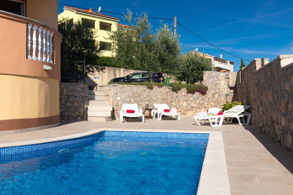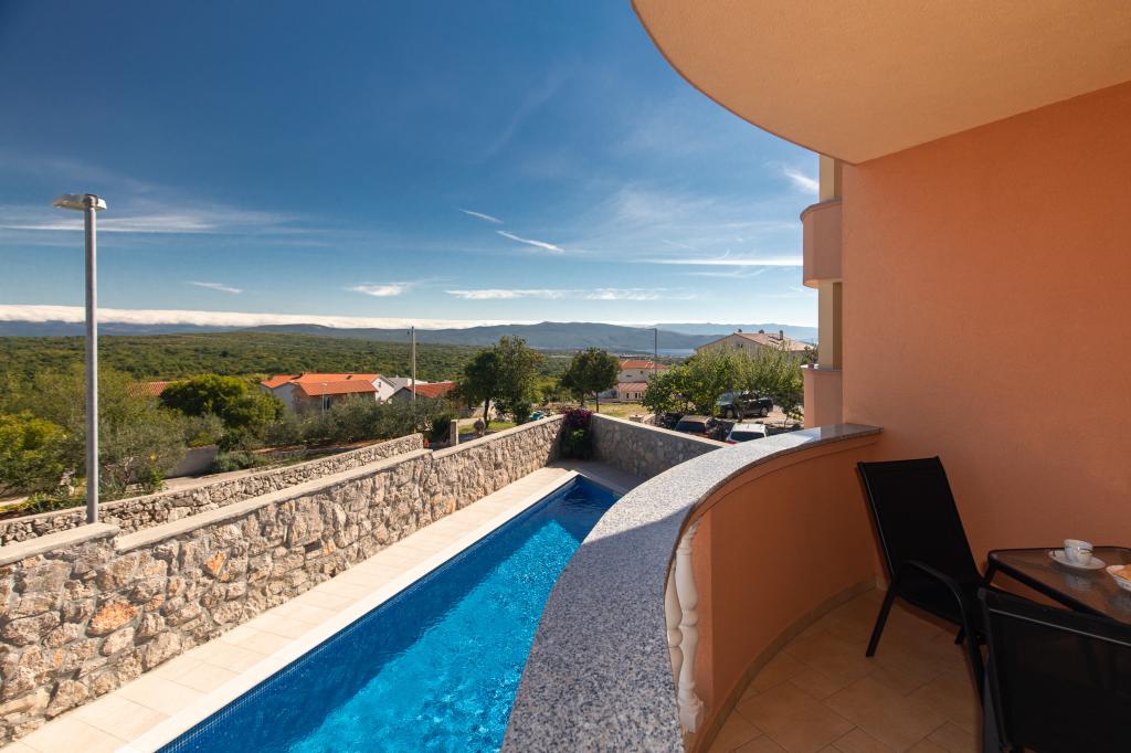 Obec Salatić je přibližně 3 km od města Krk, v nadmořské výšce asi 140 m, s příjemným mírným klimatem a čerstvým vzduchem. Z ní je nádherný výhled z Učky, přes Velebit až na nádherné modré moře a Kvarnerské souostroví (Golog otok, Grgura, Cres...) Apartmány se skládají z jednoho (A2 2) nebo dvou (A4 2) dvoulůžkových pokojů , kuchyně, jídelna, obývací pokoj, koupelna a balkon. ) Balkony s již zmíněným nádherným výhledem jsou perfektním místem pro posezení u večeře nebo pro klidný odpolední odpočinek. Je vybavena všemi potřebnými zařízeními, které vám pobyt ještě zpříjemní a zkrásní. Nabízíme také velký bazén se slanou vodou, perfektní místo pro odpočinek, zábavu a vyhýbání se davům na plážích. Apartmány jsou jen 5 minut jízdy autem od centra Krku (3,5 km) a mnoha městských pláží. Osada je velmi dobře dopravně propojená, což vám velmi pomůže při poznávání venkovských částí ostrova
