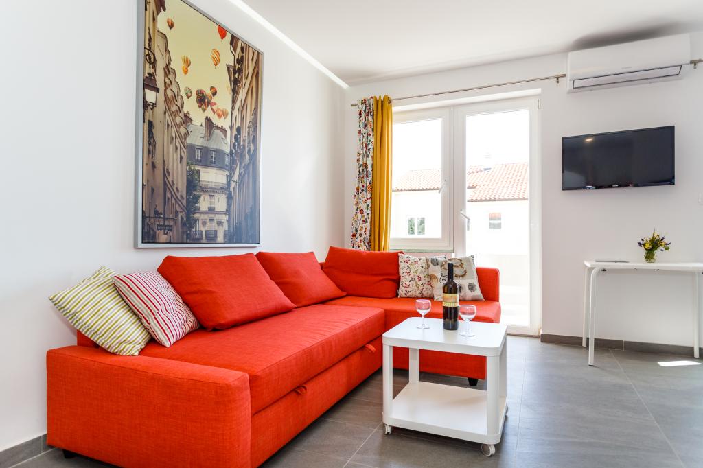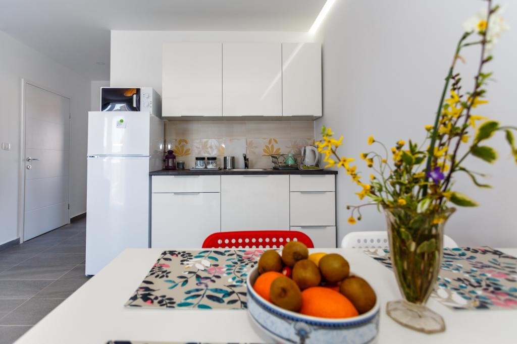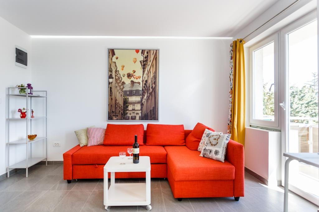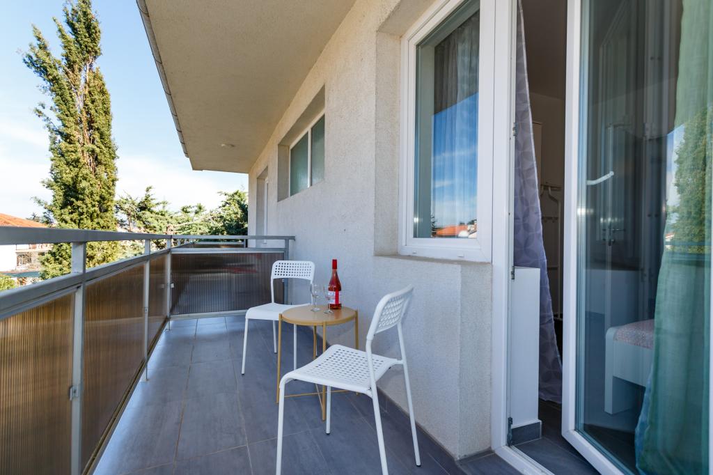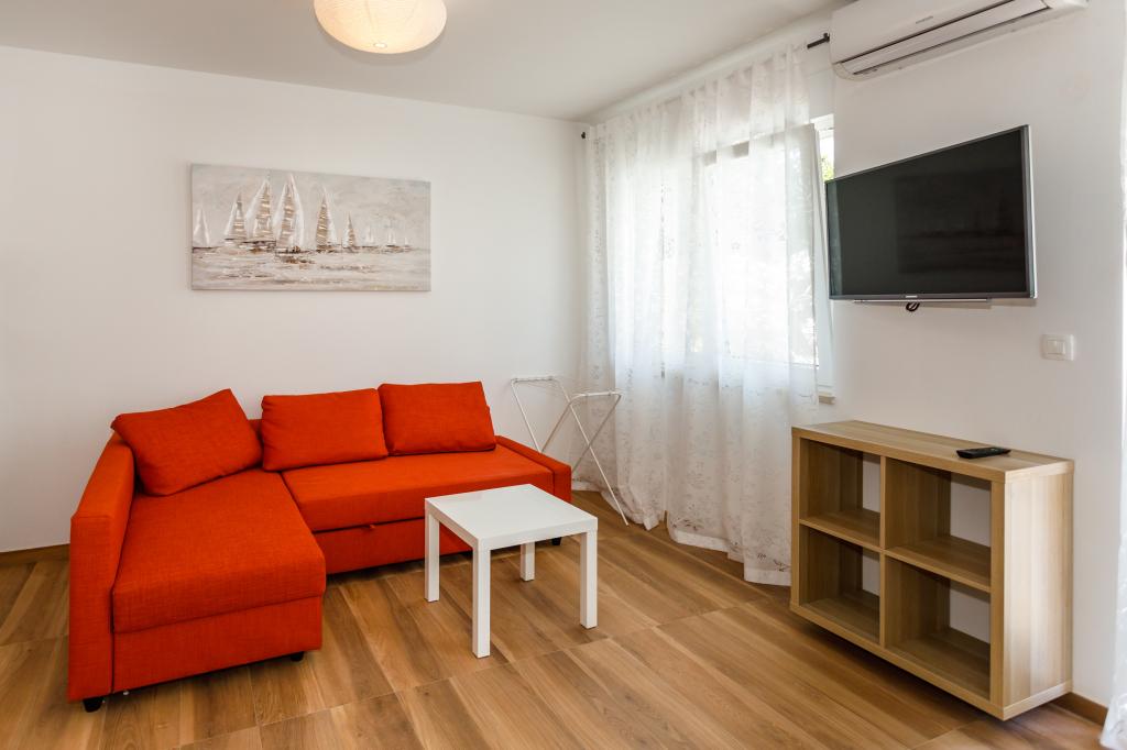Pozdrav! :) Toto je náš zbrusu nový byt v blízkosti centra Krku (asi 5 minut chůze). Byt má jednu ložnici s manželskou postelí, obývací pokoj s pohovkou, kterou lze rozložit na dvoulůžko, kuchyň a koupelnu s potřebným příslušenstvím. Má také balkon, kde si můžete užívat slunce kdykoli během dne. Nabízíme bezplatné parkovací místo ve stínu, bezplatnou klimatizaci, smart TV s Netflixem, gril na zahradě u apartmánu a bezplatné WiFi.
