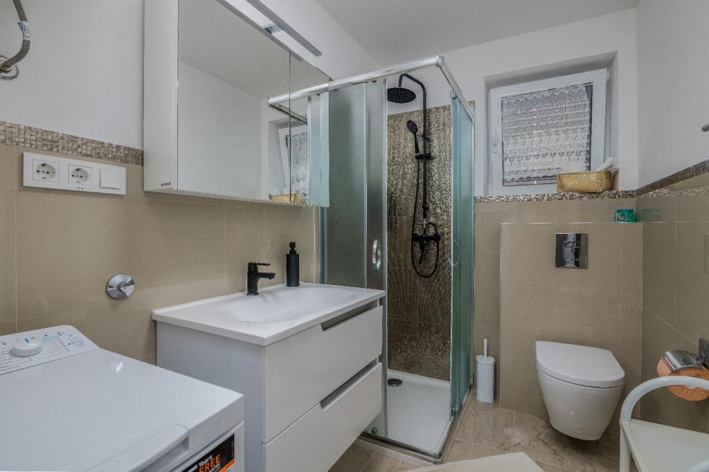 Apartmány Nada se nacházejí na atraktivním místě ve městě Krk, pouhých 100 metrů od moře a 10 minut chůze do centra města. Apartmány mají výhled na moře, jsou obklopeny zelení a prostorným dvorem. Pronajímáme 3 jednotky. Apartmán 1, kategorizovaný 4 hvězdičkami, o velikosti 55 m2, se skládá ze dvou samostatných ložnic, každá s balkonem a koupelnou s WC a sprchou, postele 160x200, samostatná kuchyň s obývacím pokojem. Apartmány 2 a 3 jsou 3hvězdičkové kategorie o velikosti 46 m2, mají jednu samostatnou ložnici s lůžkem 160x200 a větší obývací pokoj s lůžkem 160x200. Všechny apartmány jsou moderně zařízené a mají pračku, myčku, LED TV, troubu, mikrovlnnou troubu, toustovač, kávovar Nespresso... Všechny pokoje v apartmánu jsou klimatizované. V blízkosti apartmánu se nacházejí oblíbené pláže Dražica a Punta Di Galetto. Historické památky jsou 500 metrů od apartmánu, např. Pevnost Krk. Nejbližší letiště je letiště Rijeka, 25 km od ubytování.