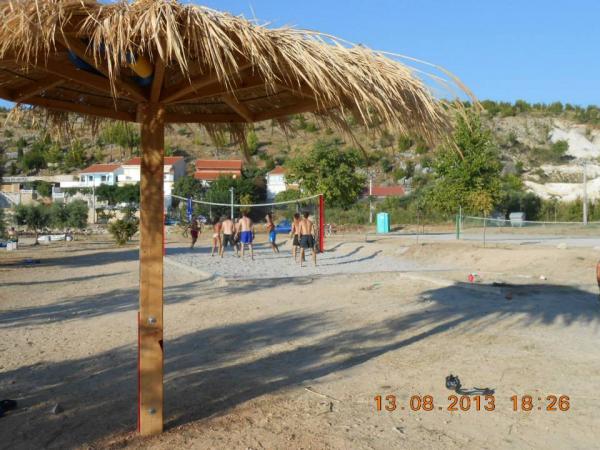 Na pláži jsou zařízení pro: fotbal, tenis, bagminton, dětské houpačky, bowling. Samotná pláž má mírný vstup do moře (pro děti a nižší plavce) a je pokryta štěrkem. K dispozici je také část skalnaté pláže s menší a větší hloubkou pro potápění a kde jsou schody, z nichž se můžete dostat z moře. Pláž má také přírodní část se skalnatým pobřežím, kde je také možné koupání a opalování. Caffebar přímo na pláži. 1000 metrů odtud je ústí Zrmanje, kde je možné rafting. Nádherné jeskyně Cerovec (17 km) s krápníky. Návštěva Zadaru s mnoha muzei a starožitnostmi, mořskými orgány (jako rarita na světě) a pozdravy na slunci (30 km). Plitvická jezera vzdálená asi 70 km. Národní park Paklenica, vodopády Krka. ,