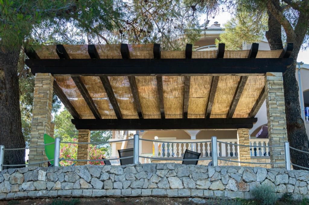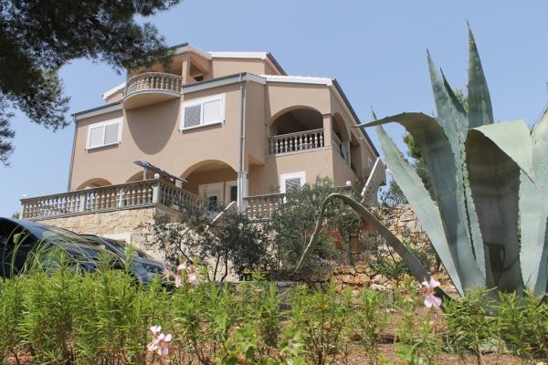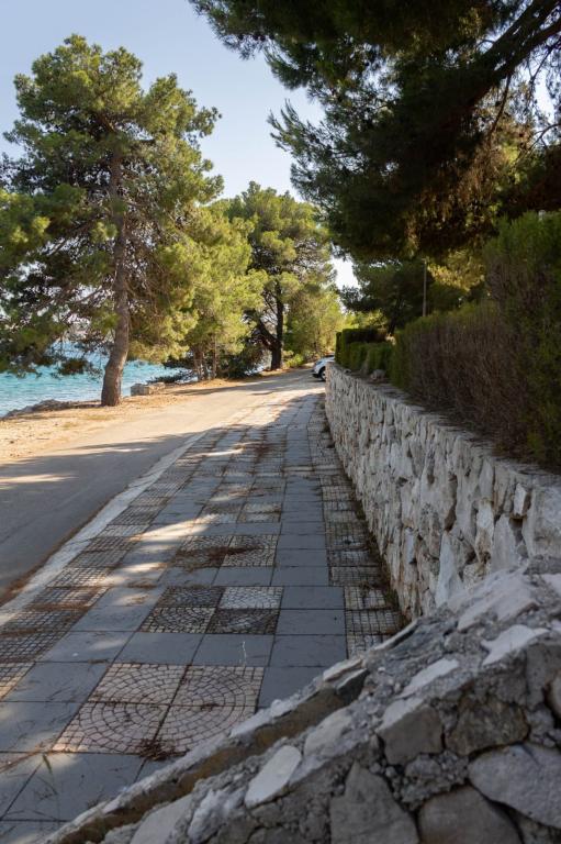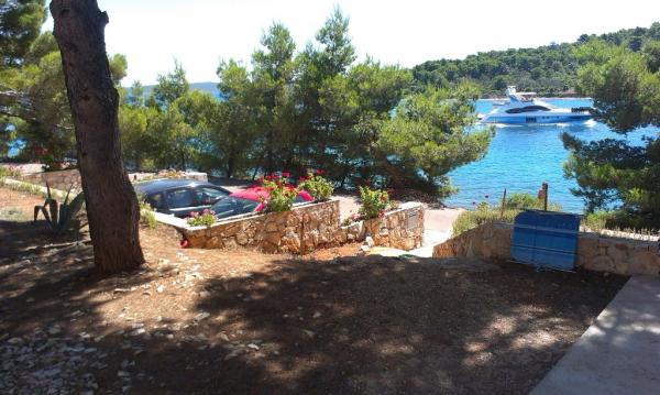 Okolí domu krásné, na půjčení lehátka, plavací kruhy. Kolem domu posezení, závěsné houpačky, ubytování hned u moře. Ale dům se nachází v průplavu, kudy projede denně snad 1000 lodí, jezdí blízko, takže nemůžete nikam si zaplavat, co víc, stále od rána do večera od lodí velké vlny, moře rozvíření a studené, kousek dál za kostelíkem je kamínková pláž, lepší vstup do moře, ale neuvěřitelný nepořádek. Ubytování odpovídá fotkám, ale nikde není psáno, že máte společnou terasu s dalšími lidmi, se kterými se hledíte do talířků.