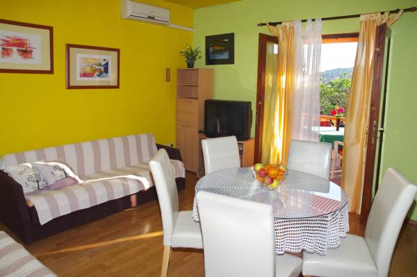 Apartmány se nacházejí v klidné části Kukljica, ideální pro klidnou a klidnou dovolenou a přitom jen minutu chůze od moře. Nachází se na konci Zelena Punta, takže za deset minut chůze lesem se dostanete na hlavní pláže v Zelené Puntě. Apartmány jsou velmi prostorné s velkou terasou, dobře vybavené, velmi dobré wifi se silným signálem, takže na jejich zařízeních může být celá rodina.