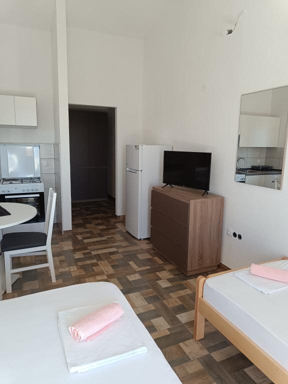 Leonard Apartments Nacházíme se v malém a klidném městečku Kustići Nabízíme nové a plně vybavené apartmány s parkováním. Každý apartmán má klimatizaci, Wi-Fi, ložní prádlo, TV, plně vybavenou kuchyň a terasu. Pláž je vzdálena 20 metrů a v oblasti apartmánů jsou obchody, restaurace a pekárna! Máme také kotviště lodí 20 metrů od bytu!