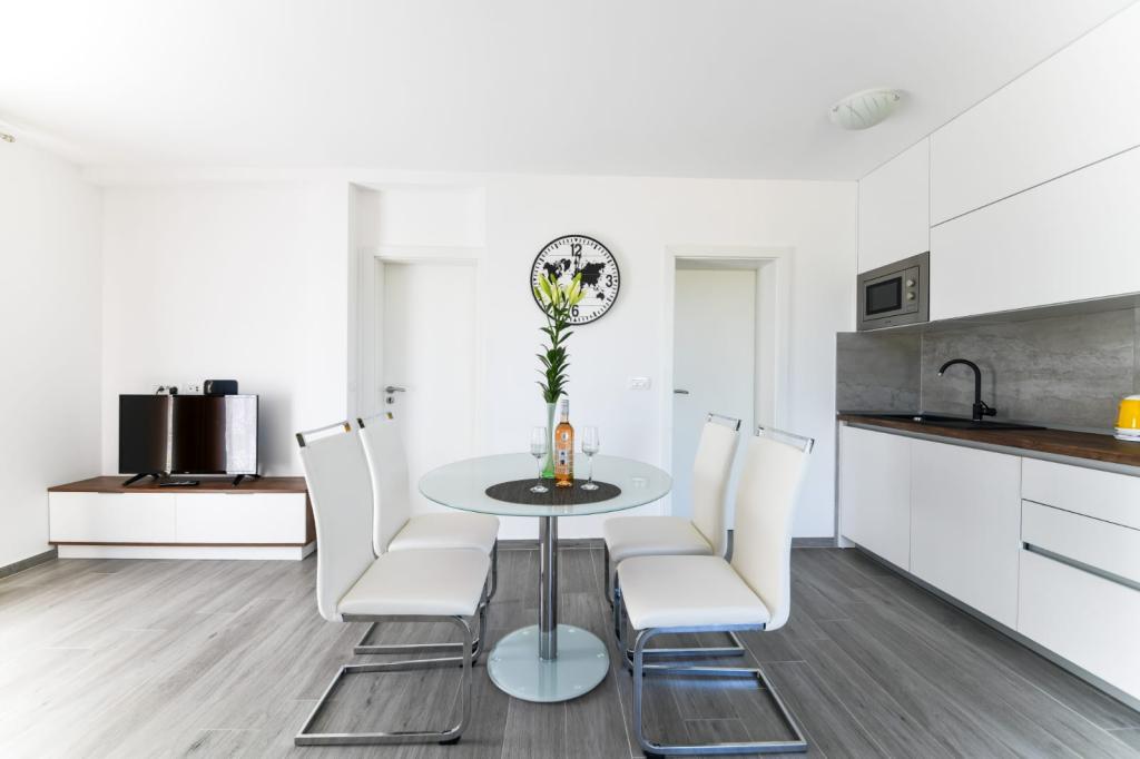 Možnosti výletu a dovolené v Chorvatsku jsme začali hledat pozdě, tři týdny před cestou. Měli jsme však štěstí a v pro nás nezbytných dnech se Davidův byt ukázal jako volný. Cestujeme autem a byli jsme spokojeni s domem s bezplatným prostorným parkovištěm. Oblast, kde se apartmány nacházejí, je turisticky velmi zajímavá, za 10-15 minut chůze najdete mělké moře a písečnou pláž pro děti, nebo za 15 minut autem najdete skvělou variantu se skalnatou pláží. Nedaleko města Zadar, kde můžete vytvořit kulturní program pro turisty. Dům, ve kterém se apartmány nacházejí, je nově postaven s využitím moderních technologií. V létě vás to ušetří horka a tichá, výkonná klimatizace dělá svou práci dokonale. Apartmány jsou velmi čisté, nejsou zde žádné nepříjemné pachy ani pocity. Moderní dobře vybavená kuchyně nás potěšila myčkou. Naše potěšení doplňovala pračka, promyšlená sprchová kabina a kompetentní větrání. Dny byly horké 38-39 stupňů a my čtyři jsme spali dokonale v chladných místnostech. V blízkosti silnice, ale provoz je vzácný a dům má vynikající moderní zvukovou izolaci. Samostatně beru na vědomí správně zvolenou kvalitu ložního prádla a ručníků. Majitelé apartmánů mluví dobře anglicky, bydlí na druhé straně domu a jsou vždy připraveni pomoci. Několik restaurací, supermarketů a obchodů se nachází v okruhu 5-10 minut jízdy autem. Samozřejmě v extrémně horkých dnech nepoužíváme BBQzone. Máme v úmyslu navštívit znovu, protože jsme neviděli všechny památky v této oblasti. Naprostá spokojenost.