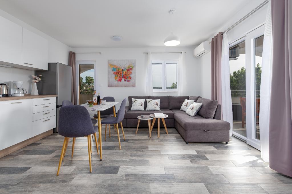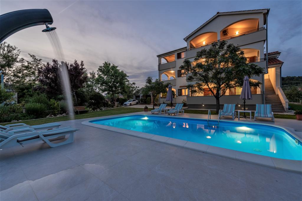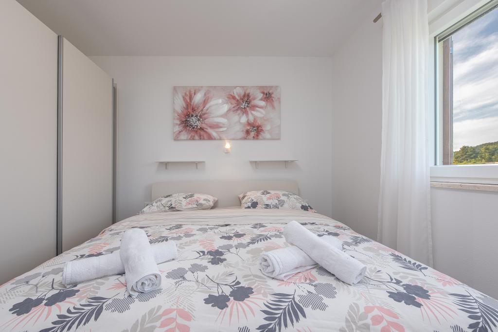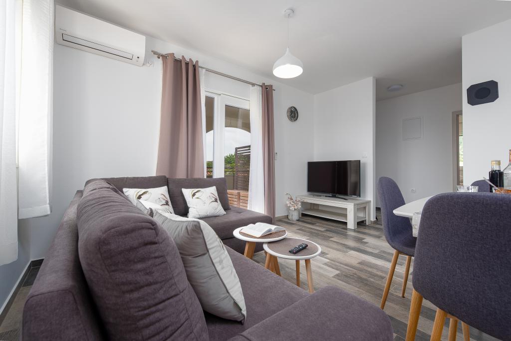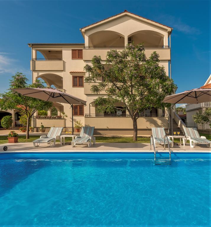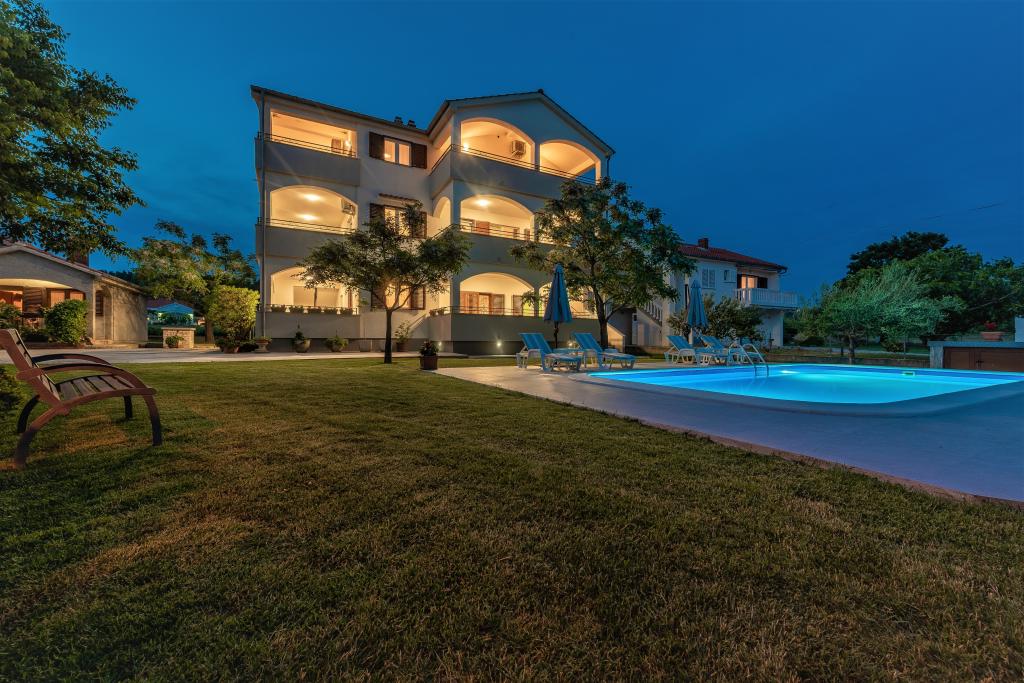 Apartmány se nacházejí v klidném městečku Ljubač, 16 km od Zadaru. Jsou 150 m od první pláže. Další pláže jsou také poblíž. Byt je 2+2, t.j. 4 osoby - pokoj s manželskou postelí plus přistýlka - rozkládací pohovka. V případě potřeby je k dispozici i dětská postýlka. Plocha bytu je 46m2 plus velká terasa. Apartmány jsou plně vybaveny: klimatizace, SAT TV, WIFI, myčka, pračka, toustovač, kávovar, mikrovlnná trouba atd.. Ochrana proti komárům na všech oknech. V přední části je bazén 8x4m s hloubkou 1,5m. Parkovací místo k dispozici. Pobytová taxa v ceně!