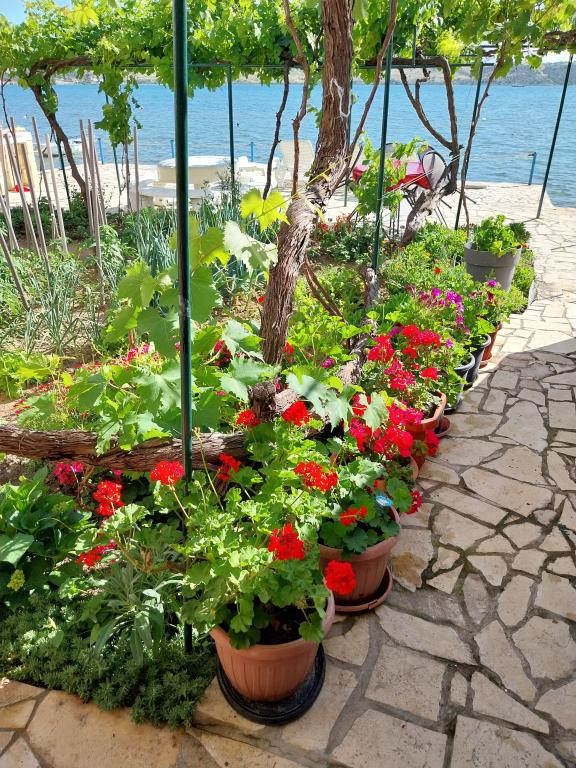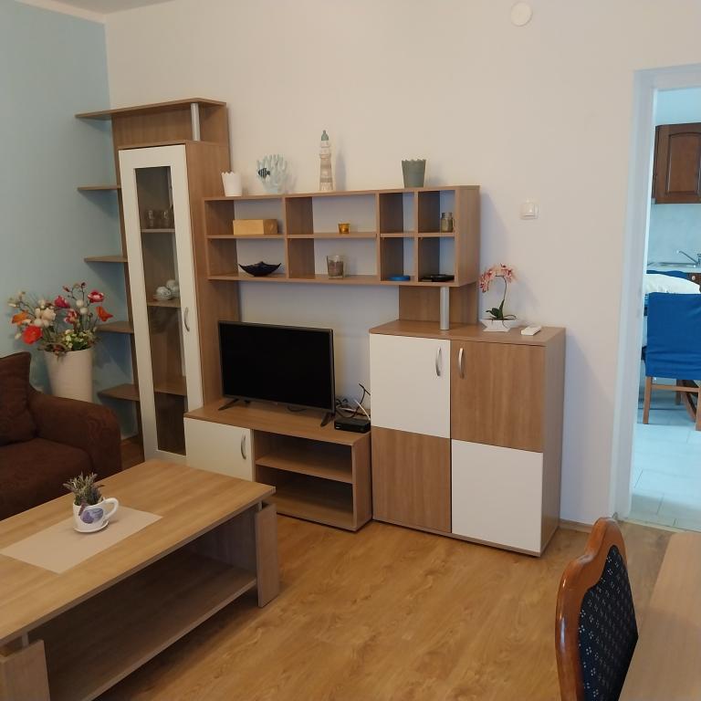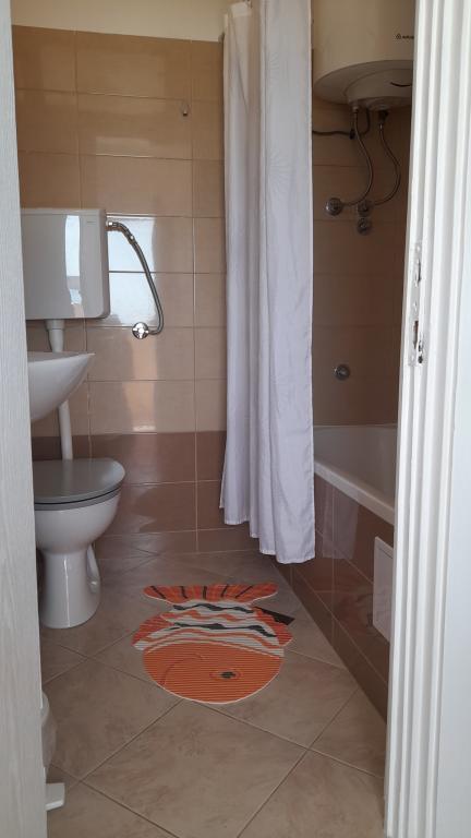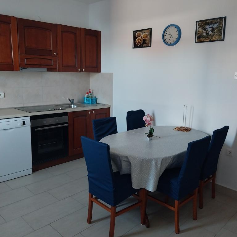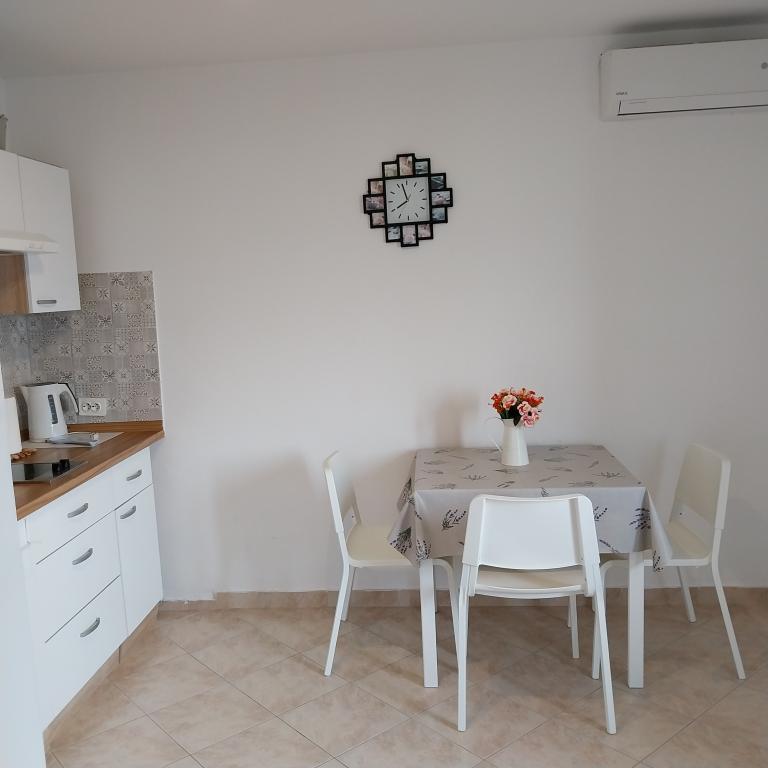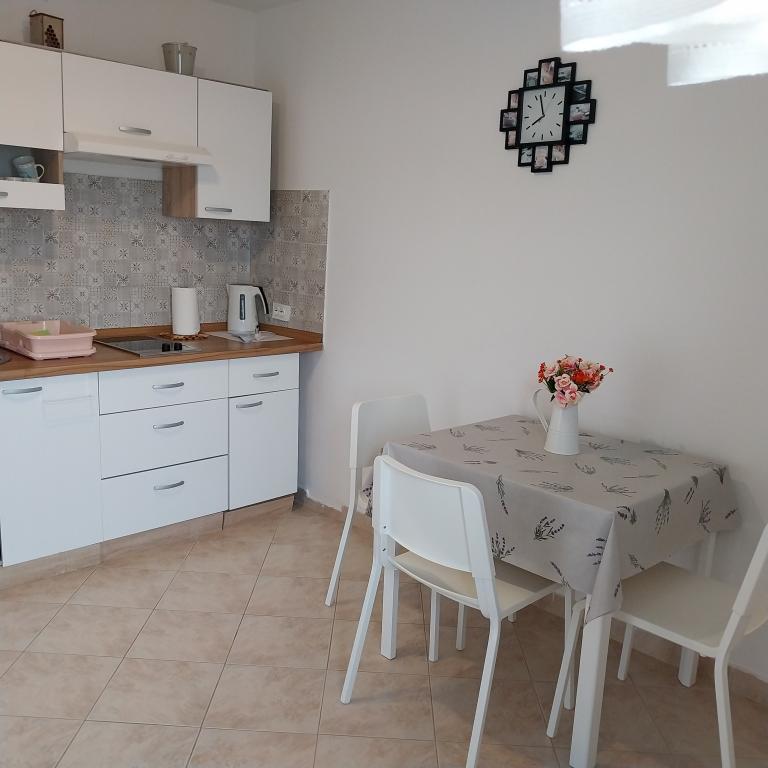 Pobytová taxa je v ceně. Doklad o potvrzení rezervace při rezervaciNabízíme našim hostům gril, terasa se stoly ve stínu vinné révy, venkovní sprchový kout, WC a využít letní kuchyň. Apartmány mají balkon s výhledem na moře.