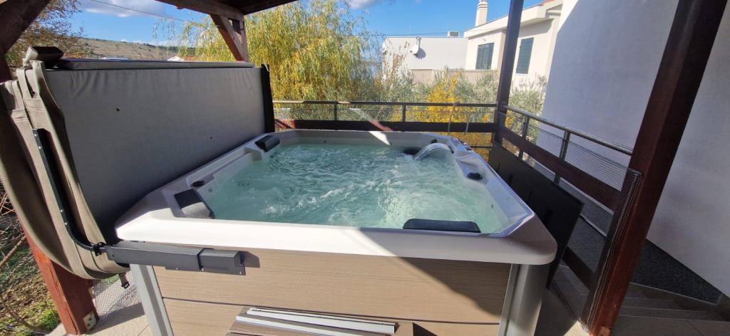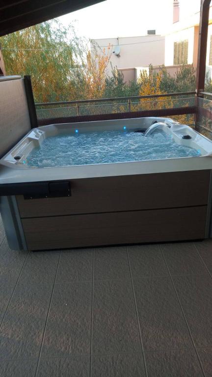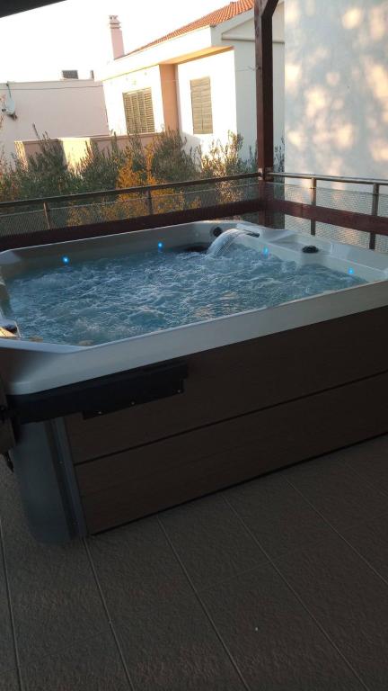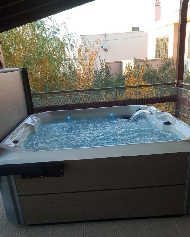 Pobytová taxa je v ceně. Doklad o potvrzení rezervace při rezervaciJedním z hlavních důvodů, proč si vybrat náš apartmán, je luxusní jacuzzi, která je dokonalým místem k odpočinku po slunečných dnech strávených na pláži nebo prozkoumáváním okolní přírody. Užívání tohoto soukromého wellness koutku vám umožní plně se zotavit a revitalizovat, ať už budete relaxovat za zvuku vln nebo pod hvězdnou oblohou. Jacuzzi poskytuje jedinečný zážitek ze soukromí a pohodlí, díky čemuž je váš pobyt ještě výjimečnější. Ať už relaxujete sami nebo se svým partnerem nebo si užíváte relaxaci s rodinou a přáteli, naše vířivka poskytuje ideální příležitost k vytvoření nezapomenutelných okamžiků. Proč si neudělat na své dovolené úplnou relaxaci v teplé vodě a zároveň si užívat klidného prostředí našeho apartmánu? Tento přidaný luxus dělá z našeho apartmánu ideální volbu pro každého, kdo chce ve své destinaci spojit pohodlí, soukromí a wellness zážitek. Pro úplné pohodlí a komfort je v ceně pronájmu zahrnut welcome drink, použití pračky a myčky nádobí, díky čemuž bude váš pobyt ještě pohodlnější a uvolněnější. Pro nadšence vodáctví navíc nabízíme kotviště v marině, která se nachází pouhých 50 metrů od apartmánu, ideální pro vaši loď. Tento doplněk ještě více zpříjemní váš pobyt a umožní vám plně si vychutnat krásy Jaderského moře.