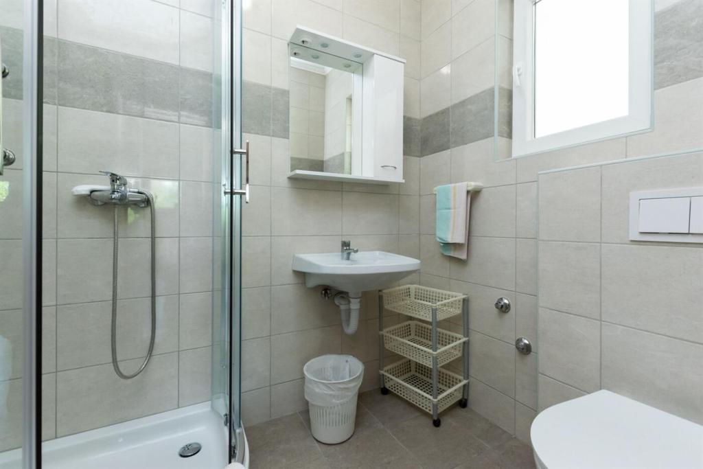 Apartmány se nacházejí v klidné čtvrti, pouhých 10 metrů od (písečné) pláže. Každý apartmán má výhled na moře. Zpřístupňujeme náš zahradní altán s grilem. Každý apartmán má hlídané parkovací místo.