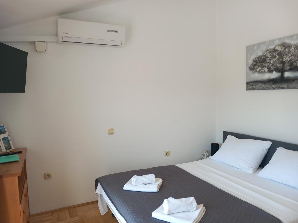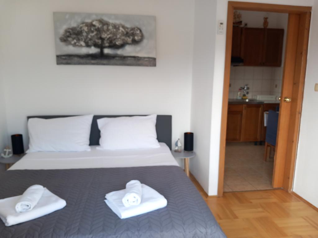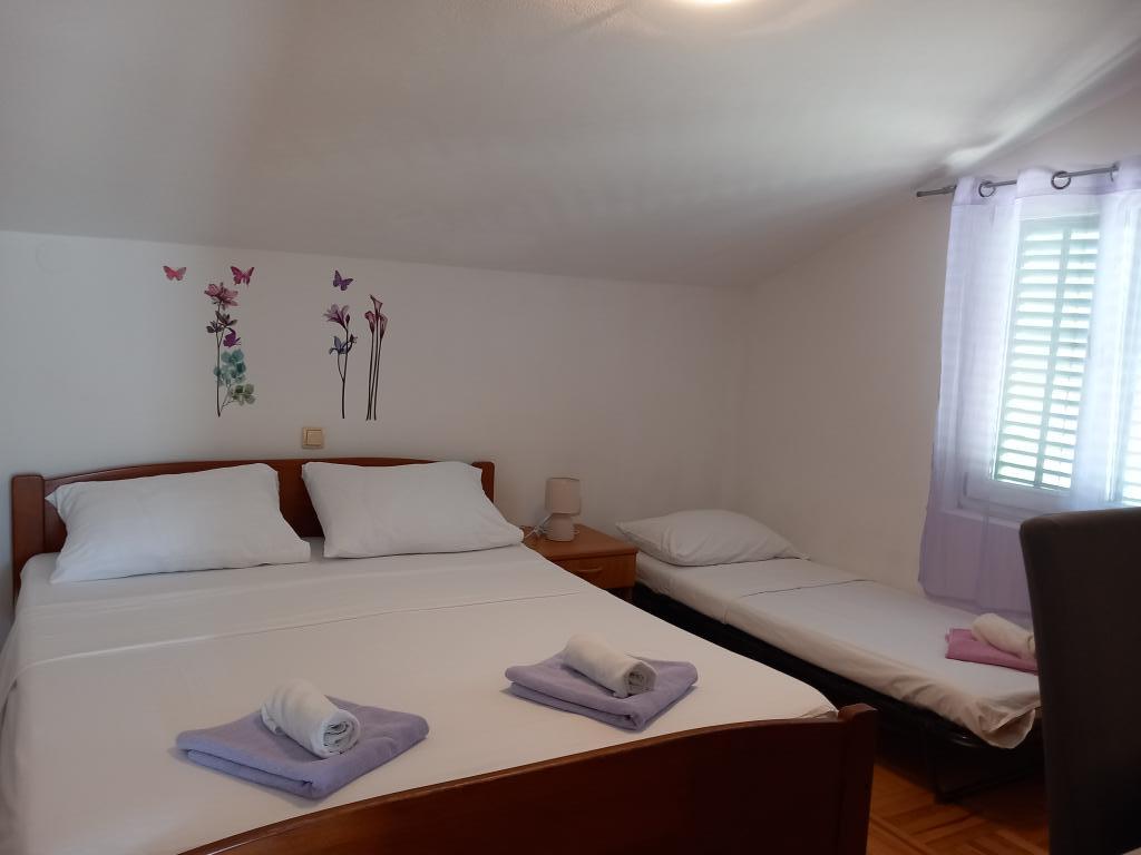 Apartmány Mira se nacházejí v rodinném domě a nabízejí ubytování až pro 15 osob ve 3 apartmánech. Nacházíme se v klidné čtvrti, téměř na samém konci slepé ulice, a veškerá základní občanská vybavenost (obchod, pekárna, bankomat, lékárna, restaurace, pošta, kavárny...) je v blízkosti, necelých 10 minut chůze. Nejznámější pláž na Rabu, Rajska plaža, dlouhá téměř 2 km a skvělá pro děti, je nejbližší pláží a dostanete se tam za 10 minut chůze. Máme bezplatné parkování vedle domu a 2 dětská hřiště. Apartmány mají k dispozici pračku a úložný prostor v přízemí (pro kočárky nebo kola). Všechny apartmány mají Smart TV s neomezeným Netflixem :)