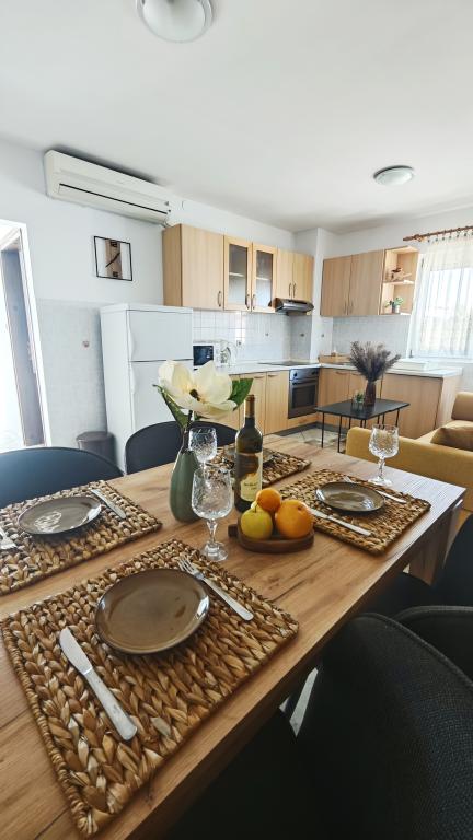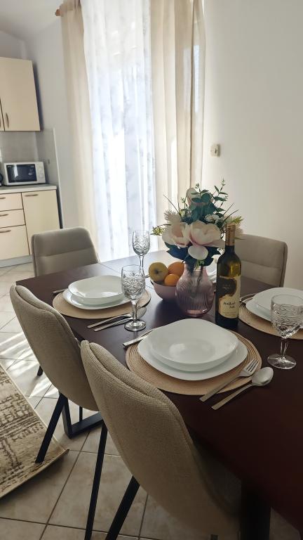 Apartmány Petrinić se nachází 100 metrů od centra města Lopar. Nabízí kvalitní ubytování a příjemný pobyt pro Vaši rodinu a přátele. Jsou umístěny v klidné lokalitě, takže můžete strávit dovolenou více uvolněnou a bezstarostnou. Nedaleko se nachází restaurace, velké nákupní centrum Konzum, pekárna, pošta, dětské hřiště, kavárna, lékárna, autobusová zastávka. Každý apartmán zahrnuje: dvě velké ložnice pro 4 osoby plus přistýlka (4 1), koupelna, pračka, kuchyň, tv / sat, internet, klimatizace, balkon, parkoviště a veškeré potřebné vybavení (ložní prádlo, kávovar, rychlovarná konvice, lednice, nádobí). K dispozici je také písečná pláž v blízkosti. Nejbližší pláž je 500 metrů od našeho domu a nejznámější "Paradise Beach" je jen 800 metrů od hotelu. Doufáme, že si vyberete apartmány Petrinić a těšíme se na Váš příjezd! Rodina Petrinić