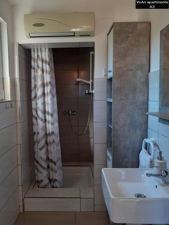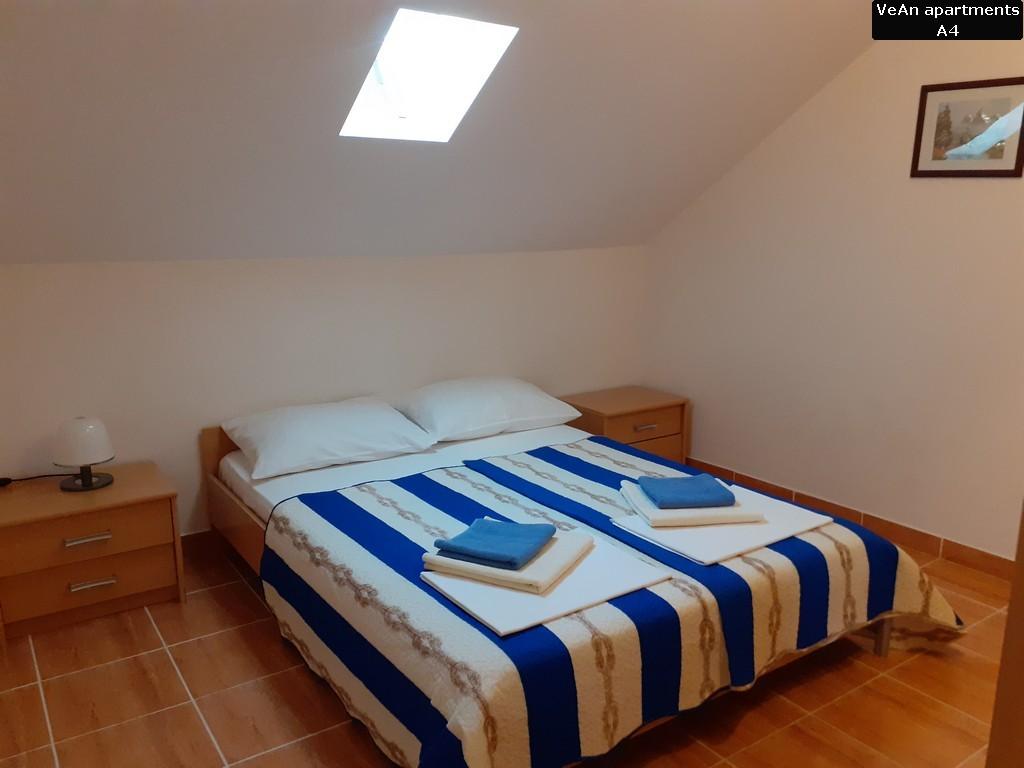 Čekají na vás čtyři komfortní apartmány. Apartmán A1 (A2+1) má velikost 30 m2 a lze jej rezervovat pro 2-3 osoby. Velkou výhodou A1 je, že je vždy v pohodě, protože se nachází v přízemí (vzadu v podzemí). Apartmán A1 vyniká svou jedinečností svými dvěma terasami; jeden odkrytý a má výhled na moře a druhý zakrytý a je možné se kochat, když prší. Apartmán A2 (A4+1) má velikost 60 m2 a lze jej rezervovat pro 4-5 osob. Velkou specialitou A2 je, že má velkou terasu 20 m2, kde si můžete užívat a opalovat se na lehátku, a nachází se v přízemí, na stejné úrovni jako dvůr. Apartmán A3 (A4+1) má velikost 60 m2 a lze jej rezervovat pro 4-5 osob. Velkou výhodou A3 je, že se nachází v 1. patře a má pěkný výhled z velké terasy. Všechno je krásnější s pěkným výhledem, dokonce i čtení knihy. Apartmán A4 (A4+1) má velikost 60 m2 a lze jej rezervovat pro 4-5 osob. Velkou výhodou A4 je, že se nachází v 1. patře a má pěkný výhled z velké terasy. Pokud první věc, kterou ráno rádi děláte, než opustíte svou ložnici, je vykouknout a vidět slunce z malého balkonu, pak je to ten pravý byt pro vás, protože jedna ložnice má malý balkon.