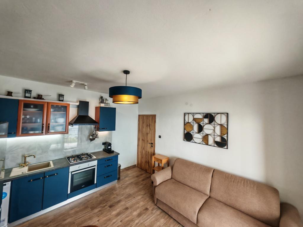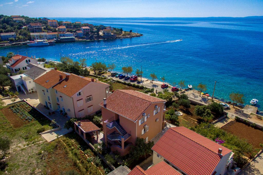 Apartmány se nacházejí přímo u moře s výhledem na ostrovy Cres a Lošinj, ideální pro klidnou a odpočinkovou dovolenou bez většího hluku a shonu. Jsou plně vybaveny. Centrum města je vzdálené pouhých 300 metrů, kde najdete obchod, několik restaurací, kavárnu a obchod s ovocem a zeleninou, bankomat. Písečná pláž pro děti je vzdálená 200 metrů. Před domem se nachází malá zelená oáza s bohatou zeleninovou zahradou, kde se hosté mohou sami občerstvit. Apartmány mají vlastní parkoviště, venkovní grilovací terasu v přízemí, kterou můžete využít, a pokud chcete něco navíc, hostitelé jsou ochotni zajistit vlastního kuchaře. Hluk není povolen před 9:00 a po 23:00. Lun se nachází v severní části ostrova Pag, bohatého na tisícileté olivovníky, a je jedinečnou oblastí v této části Středomoří. Na ploše 400 hektarů se rozkládá přes 80 000 olivovníků. Lun se nachází nedaleko Novalji, nacházejí se zde ostrovy Rab, Lošinj, Cres, Silba a 5 národních parků. Denní výletní lodní spojení s Rabem.
