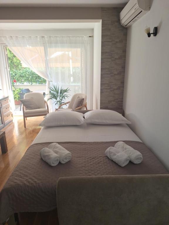Plně a moderně vybavený apartmán v klidné lokalitě. V bezprostřední blízkosti starého centra města, pouhých 10 minut na hlavní náměstí nebo nejbližší pláž v lesoparku Osejava. V blízkosti apartmánu se nachází obchod a nákupní centrum. Apartmán má vybavenou kuchyň s lednicí, troubou, myčkou nádobí a mikrovlnnou troubou. V koupelně je také myčka nádobí a fén. Z apartmánu je výstup na velkou soukromou terasu se zelení, grilem a místem k odpočinku.
