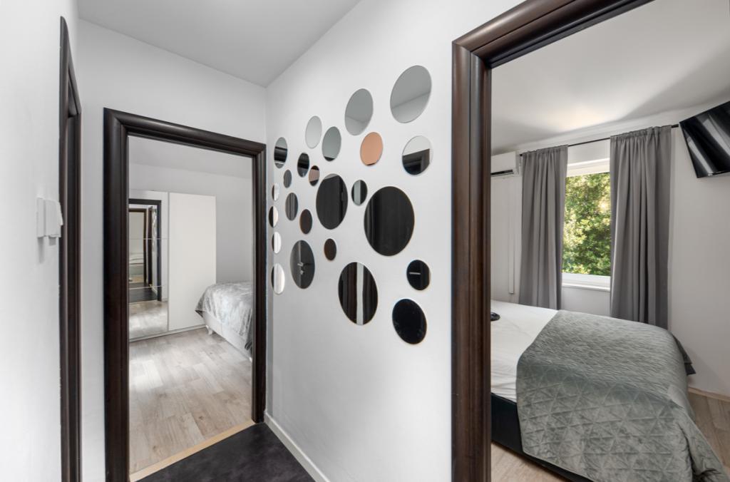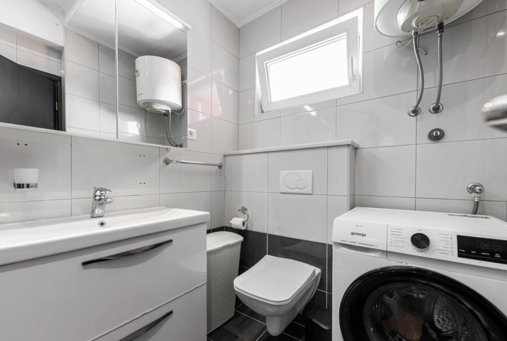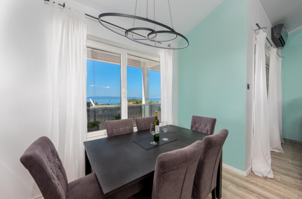 V tomto prostorném apartmánu se 3 ložnicemi, 1,5 koupelnami a dvěma balkony s krásným výhledem na moře na vás čeká vysněná dovolená. Užijte si nezapomenutelný výhled na Jadran a Biokovo, pouhých 10 minut chůze od pláže a 15 minut od malebného centra Makarské. Perfektní poloha - v blízkosti promenád, obchodů a restaurací - vám nabízí ideální kombinaci relaxace a dobrodružství. Apartmán se nachází ve 4. patře budovy bez výtahu, v klidné oblasti nad městem, kde na vás čeká ticho a úchvatné výhledy.