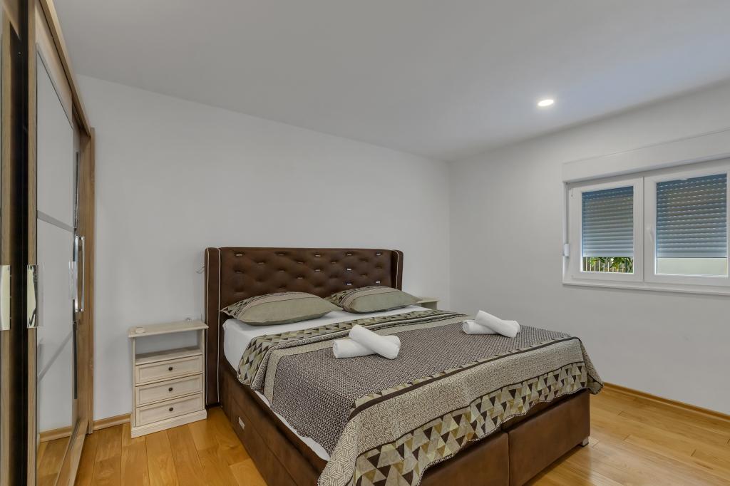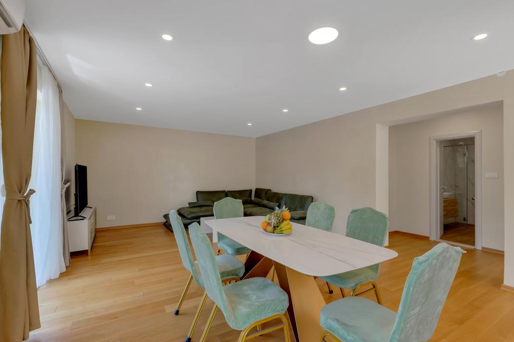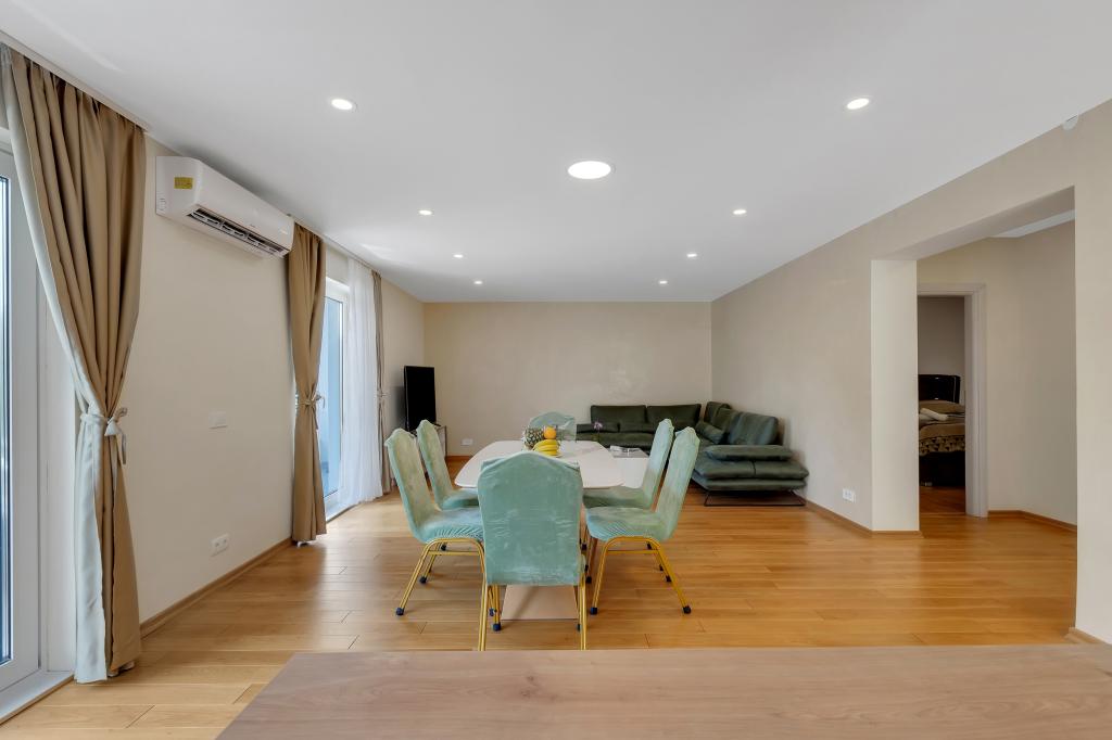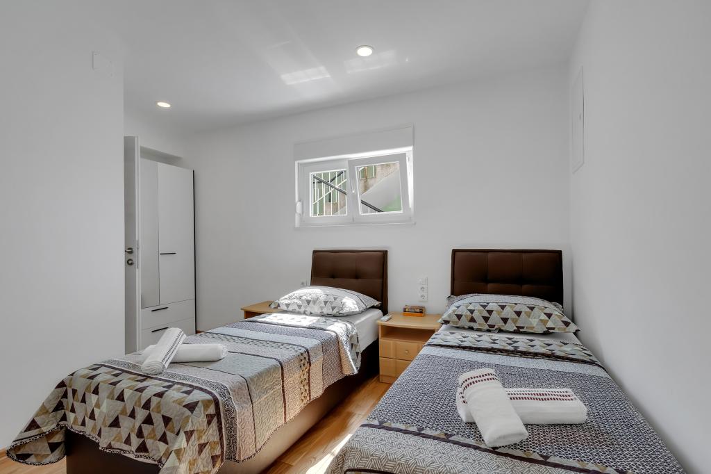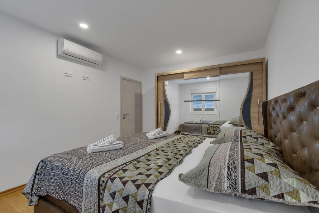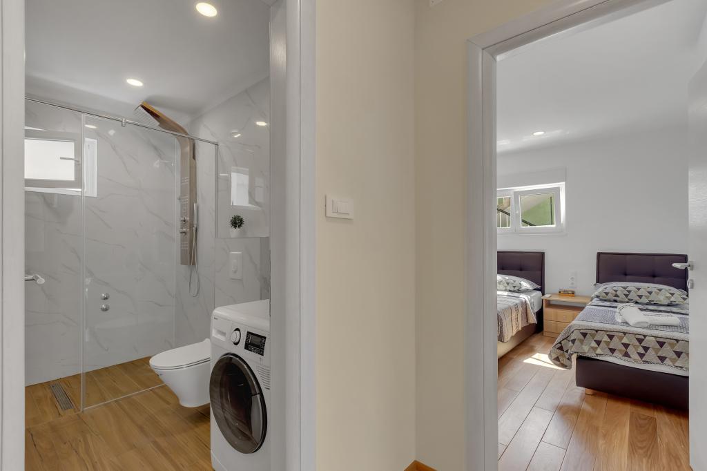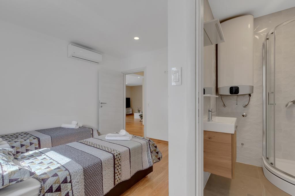 Plně vybavený apartmán/apartmán se dvěma pokoji (dvoulůžkový, postel 180x200 a druhý s 2x samostatnými lůžky, které lze na přání spojit), 2 koupelnami, velkým obývacím pokojem s kuchyní (dohromady 40m2) Byt má vše, co potřebujete na dlouhou dobu a pohodlný pobyt a nachází se v centru Makarské