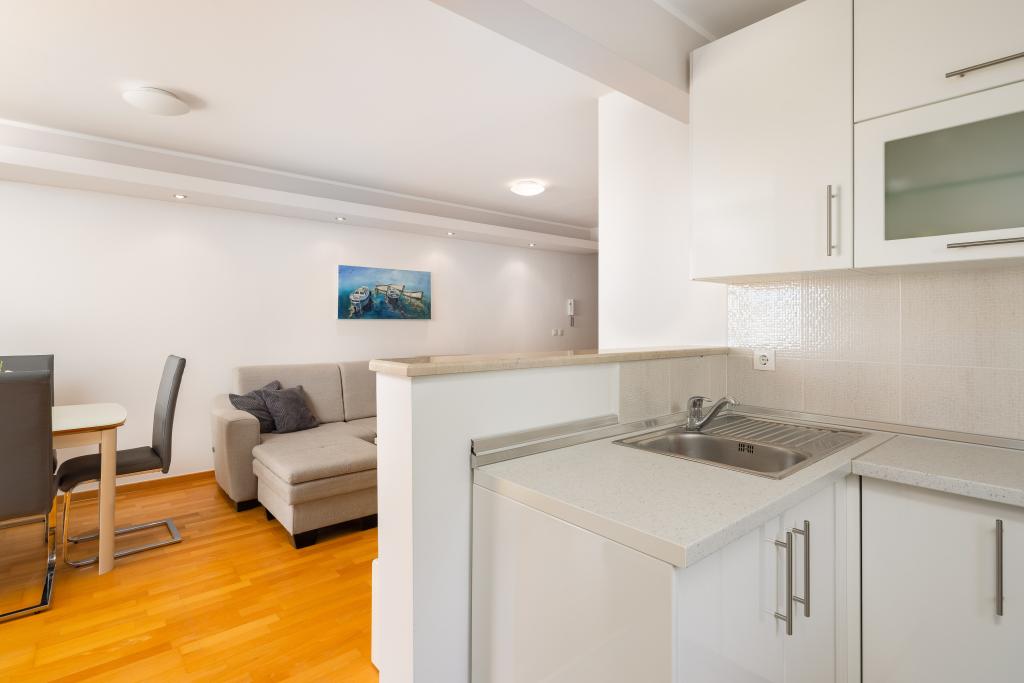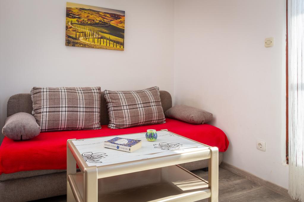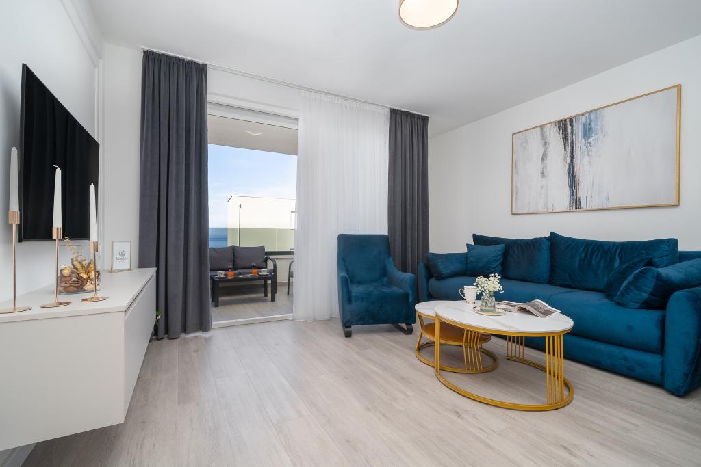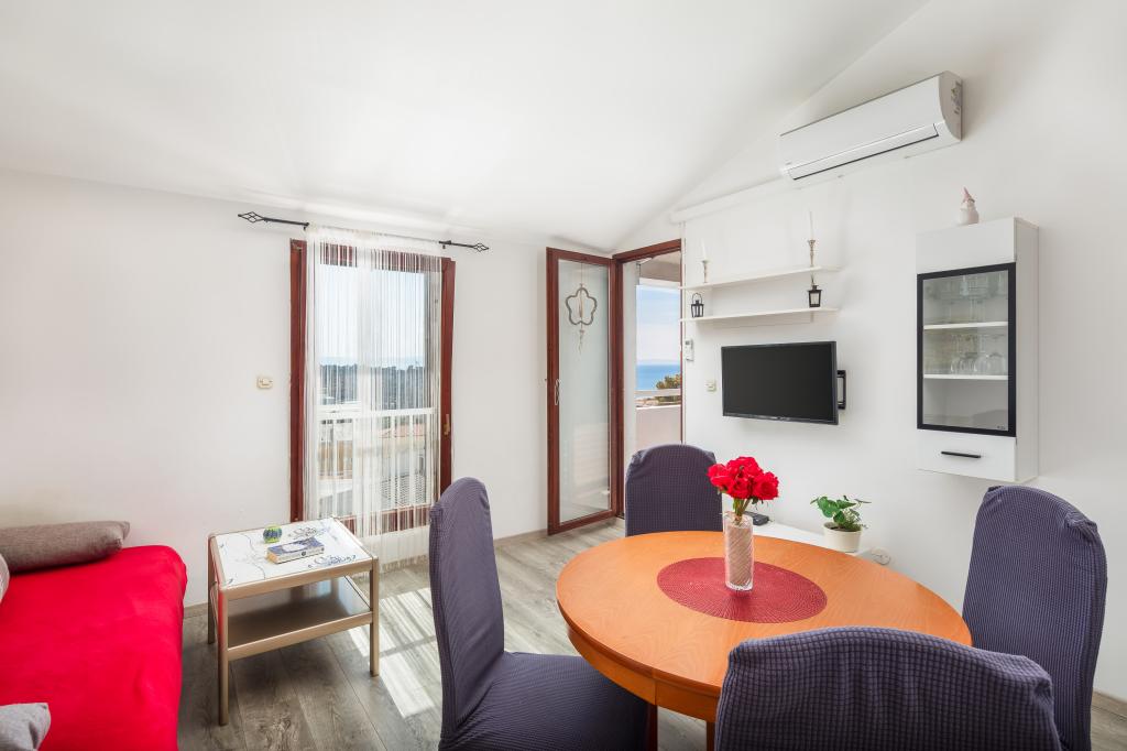 Tento apartmán má 1 ložnici, obývací pokoj s rozkládací pohovkou, kuchyň a balkon s výhledem na moře. Před budovou je bezplatné parkoviště.