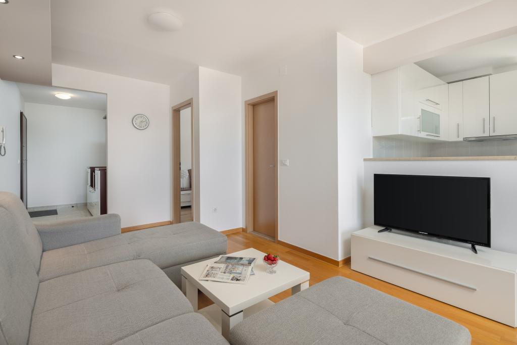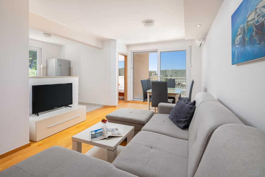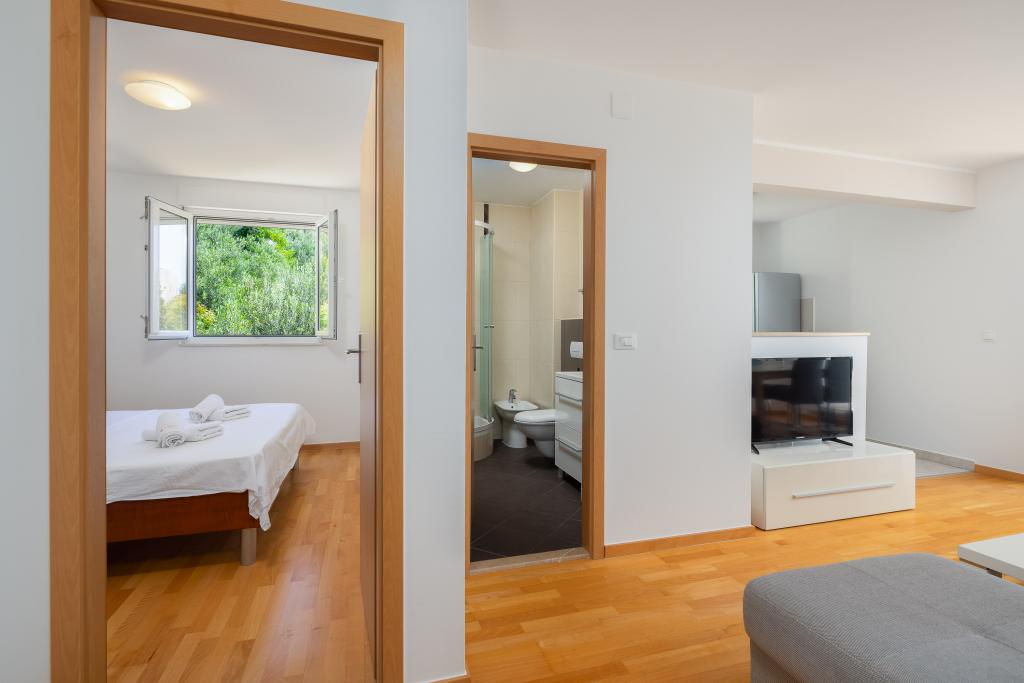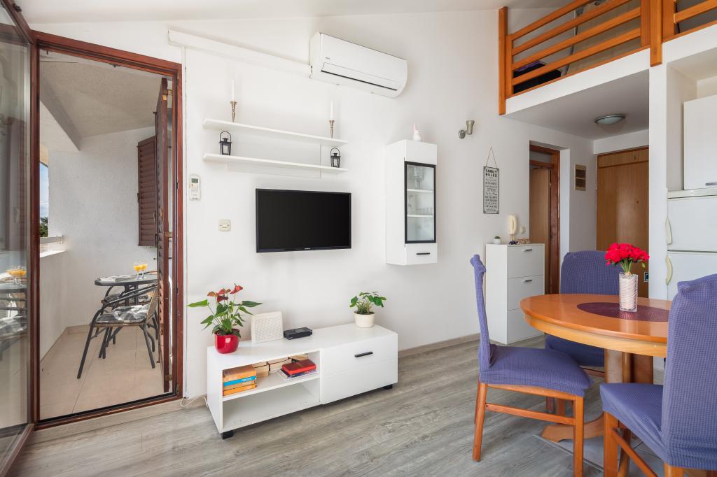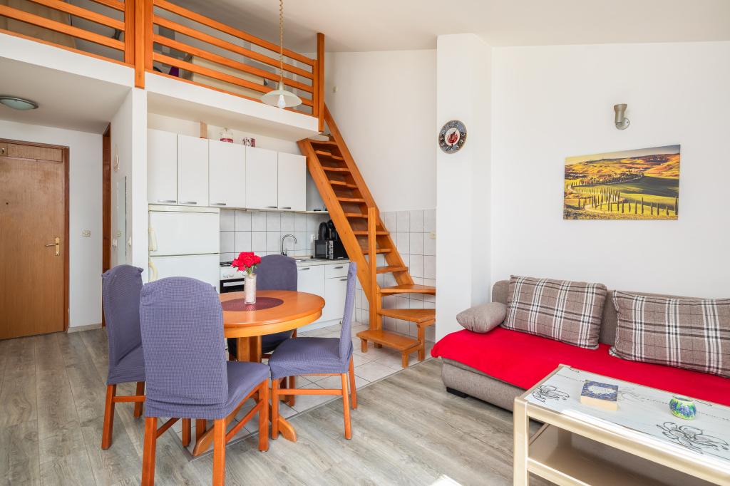 Tento apartmán má 1 ložnici, obývací pokoj s rozkládací pohovkou, kuchyň a balkon s výhledem na moře. Před budovou je bezplatné parkoviště.