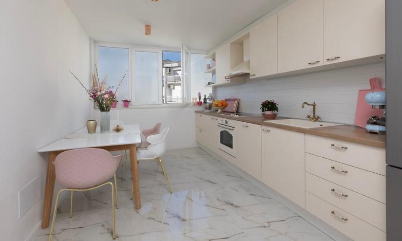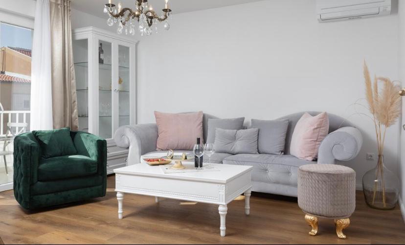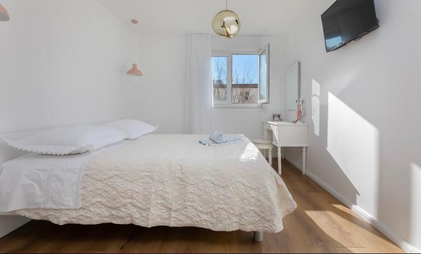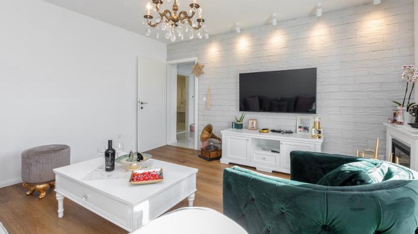 Kompletně nově zrekonstruovaný byt v bytovém domě. Nachází se ve druhém patře, 3 minuty chůze od pláže a 10 minut chůze do centra s parkováním před budovou.