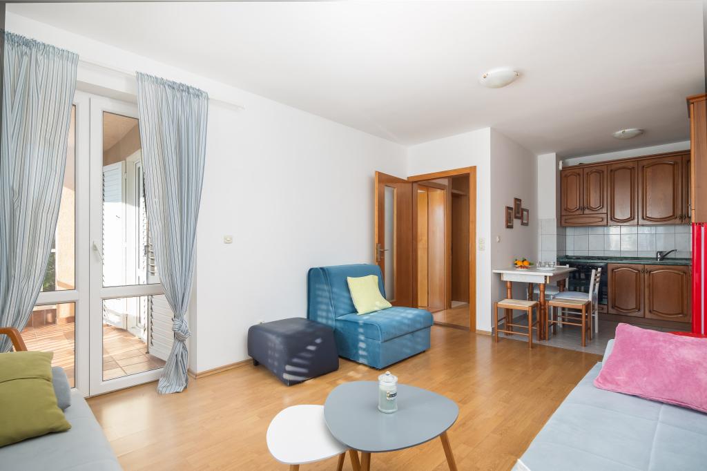Vítejte v komfortním ubytování "Jasna" v Makarské, pouhých 200 metrů od pobřeží. Moderně zařízený apartmán s jednou ložnicí, přistýlkami, jednou koupelnou a balkonem. 40 metrů čtverečních prostoru pro pohodlný pobyt. Rezervujte si dovolenou ještě dnes!