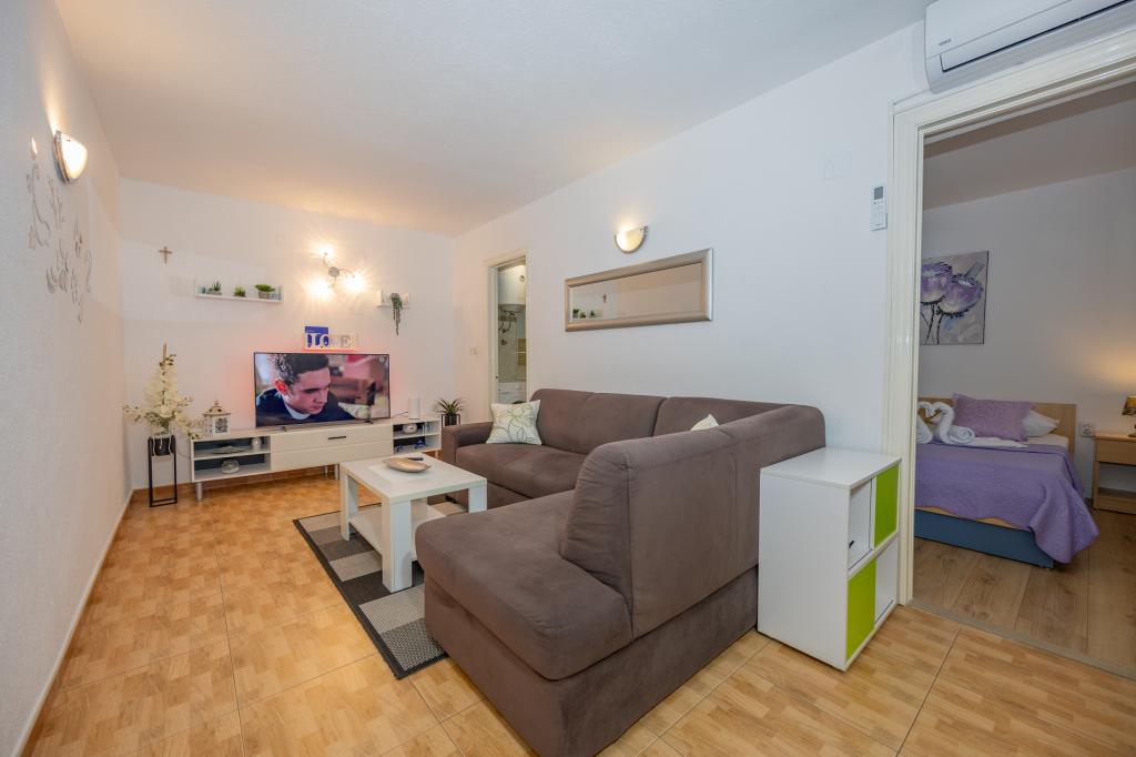Tento útulný apartmán o rozloze cca 40 m² nabízí vše, co potřebujete pro příjemný pobyt. Ubytování zahrnuje: Ložnici s pohodlnou manželskou postelí Obývací pokoj s rozkládací pohovkou (vhodná pro 1 dospělého nebo 2 děti), Smart TV a klimatizaci Plně vybavenou kuchyň s myčkou nádobí, mikrovlnnou troubou, kávovarem a varnou konvicí Koupelnu se sprchou a pračkou Před domem se nachází soukromá terasa s jídelním stolem. K dispozici je také společný gril - ideální pro relaxační večery venku. Apartmán je ideální pro páry nebo malé rodiny, které hledají pohodlné a dobře vybavené ubytování v klidném prostředí. Nabízí ideální kombinaci klidu a pohodlí a přitom je jen pár minut jízdy od centra města. Užijte si relaxační chvíle nebo prozkoumejte bohatou nabídku města s restauracemi, kavárnami a obchody - vše je na dosah ruky. Parkovací místo pro dvě vozidla je zajištěno.