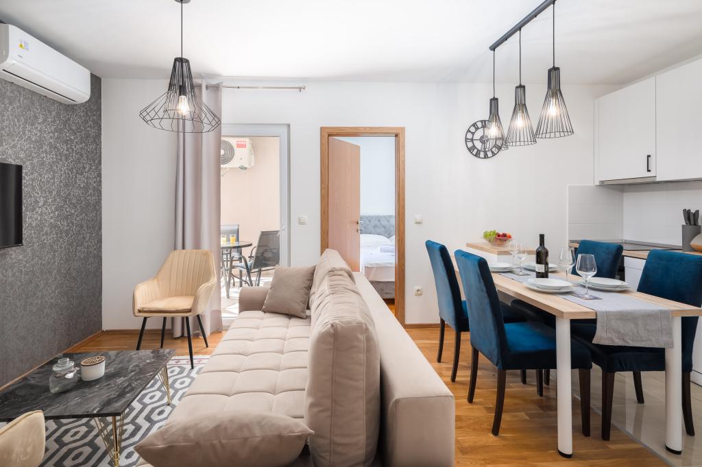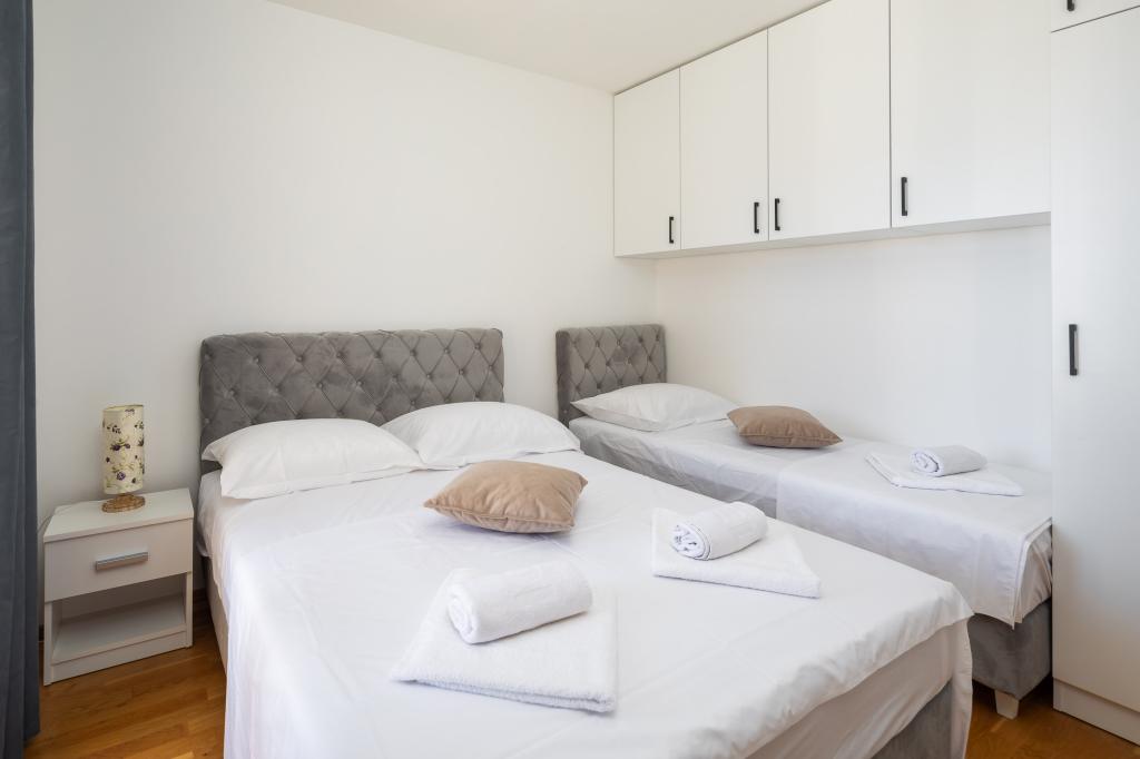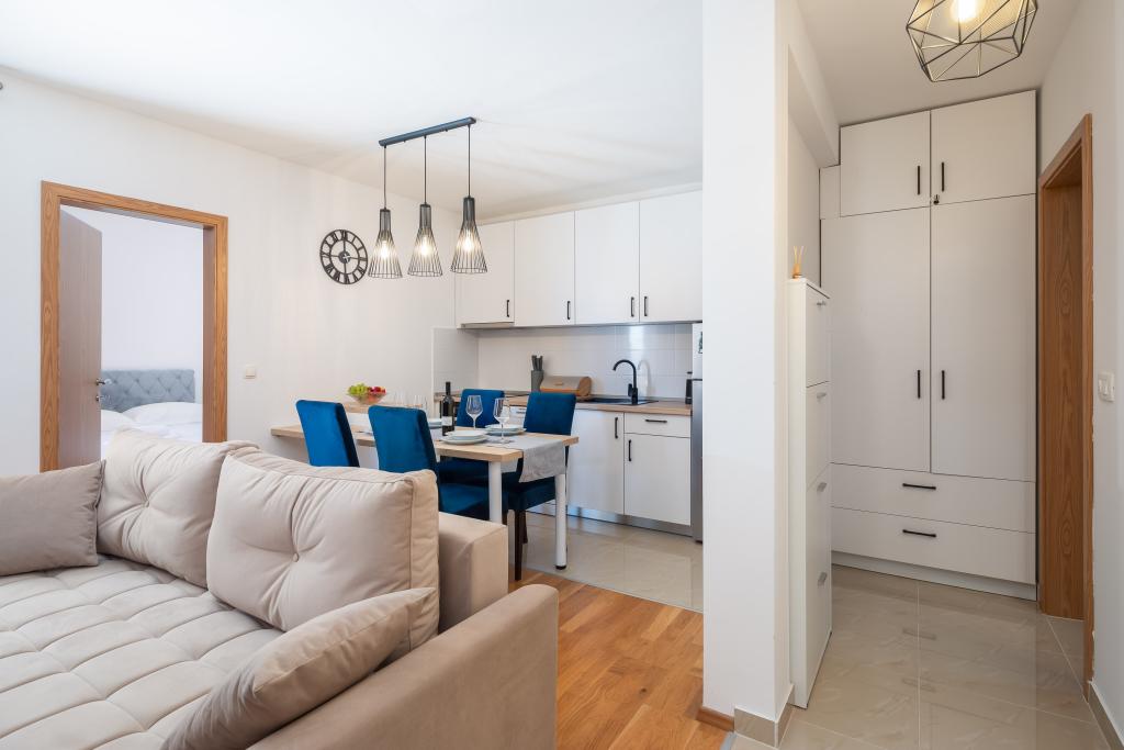 Užijte si kouzlo elegantního apartmánu Noa v Makarské. Tento apartmán s chytrou dispozicí 40 m² nabízí jednu ložnici pro 3 osoby, koupelnu, obývací pokoj s rozkládací pohovkou a balkon pro relaxaci. Součástí nabídky je i parkovací stání.