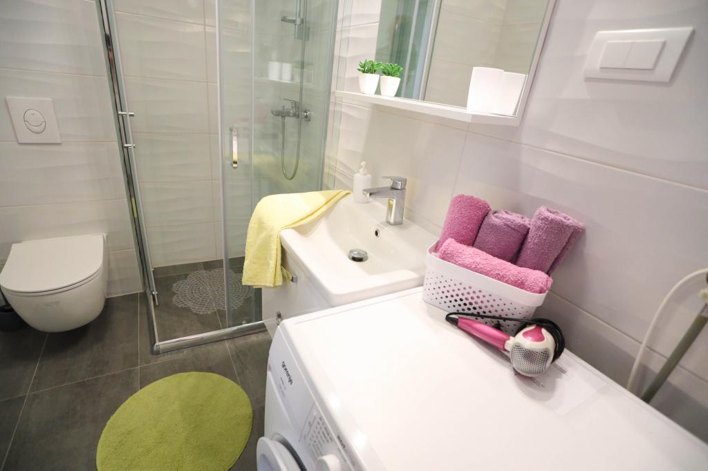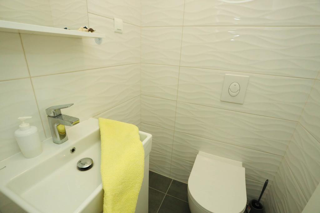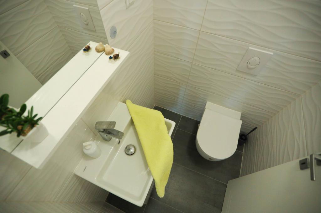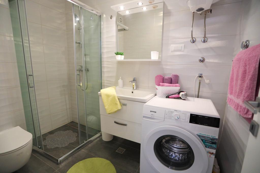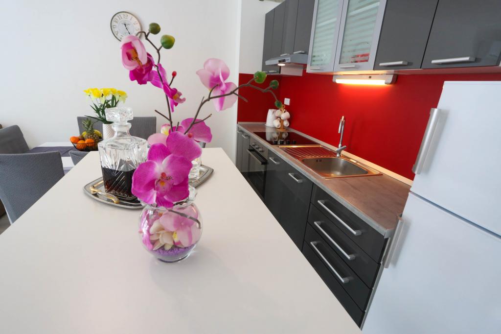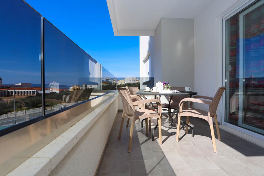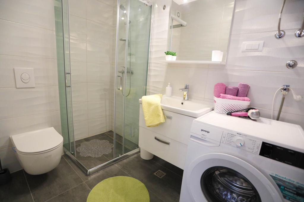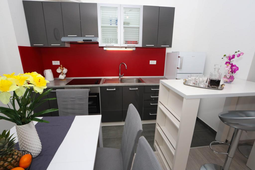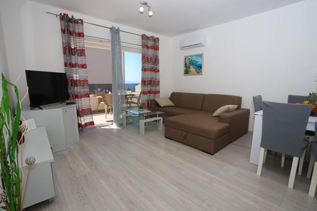 Moderně vybavený apartmán v prvním patře novostavby s výtahem. Apartmán má vše, co potřebujete pro příjemný pobyt na dovolené. Apartmán Petra se skládá z jídelny s vybavenou kuchyní, obývacího pokoje s rozkládací pohovkou, která slouží jako přistýlka, koupelny a malé toalety a dvou ložnic. Jeden pokoj má manželskou postel a druhý má dvě lůžka, která lze v případě potřeby oddělit. Nemovitost se nachází 5 minut chůze od centra nebo nejbližší pláže. Nedaleko se nachází obchod a sportovní hřiště pro rekreaci.