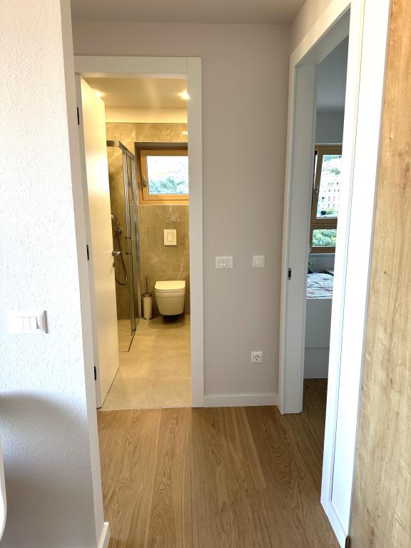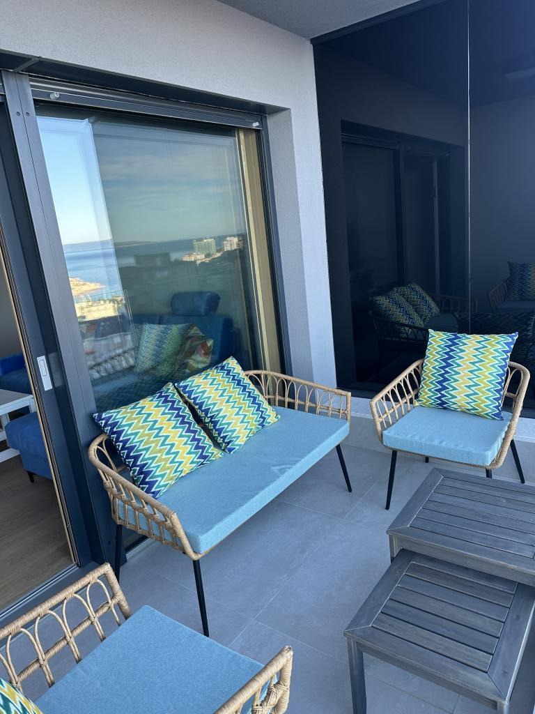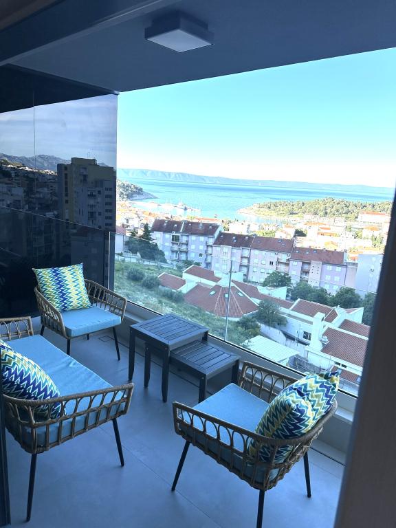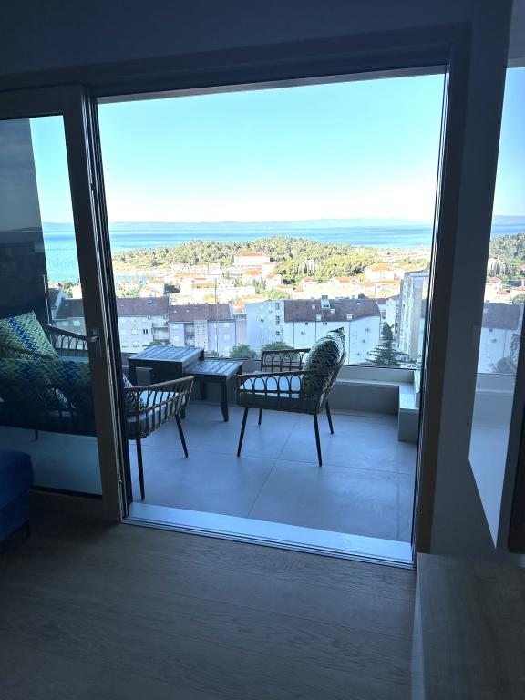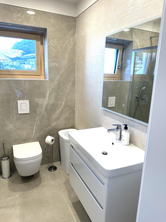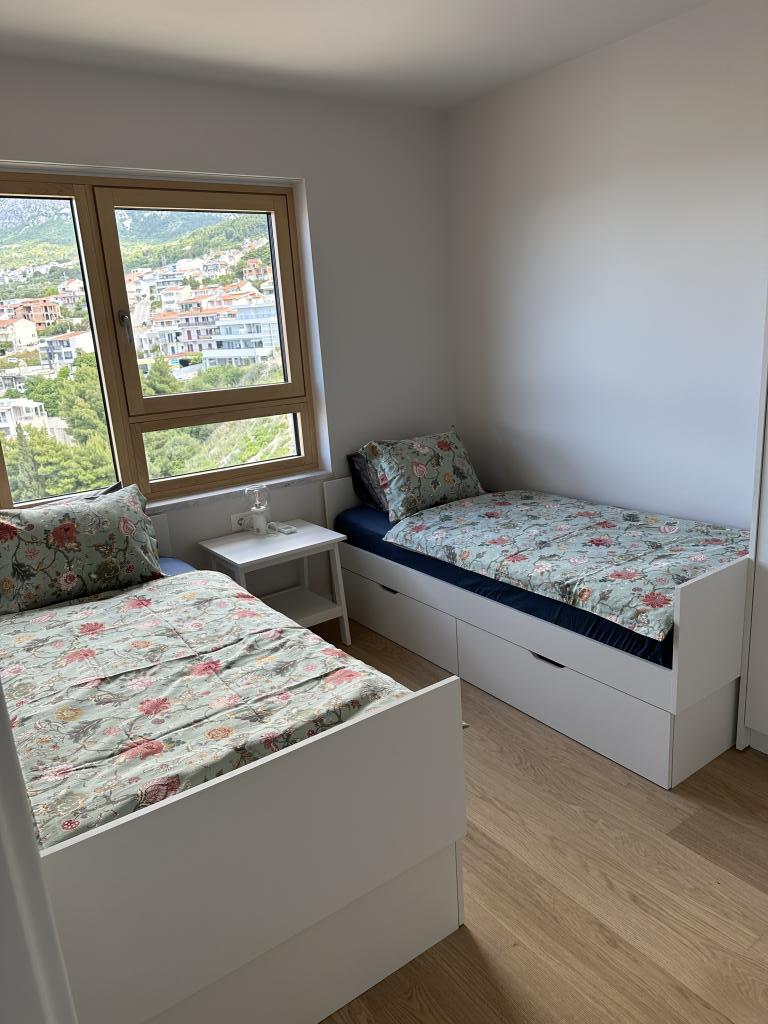 Nově zrekonstruovaný apartmán v samém centru Makarské. Budova byla postavena podle nejvyšších standardů, luxusně zařízená stejně jako samotný apartmán! K dispozici je vlastní parkování, venkovní parkoviště č. 6 pro auta na LPG a dvě parkovací místa na patře -2; č. 1 a 2. Apartmán se nachází ve 3. patře. Je orientován na jihozápad. Skládá se z kuchyně s jídelnou a obývacího pokoje v otevřeném prostoru. Kuchyň je plně vybavena, abyste si v ní mohli připravovat svá oblíbená jídla i během vaší každoroční dovolené. Prostorná koupelna se sprchovým koutem a pračkou. Dvě ložnice! Hlavní ložnice má postel 160/200, zatímco druhá má dvě postele 90/200. Apartmán je plně vybaven ložním prádlem, ručníky, kuchyňskými utěrkami a papírovými utěrkami. Tekuté mýdlo a prací prostředek na praní prádla, toaletní papír a mycí prostředek na nádobí a tablety do myčky. Z kryté terasy se rozprostírá krásný výhled na město Makarská a ostrovy Brač a Hvar.